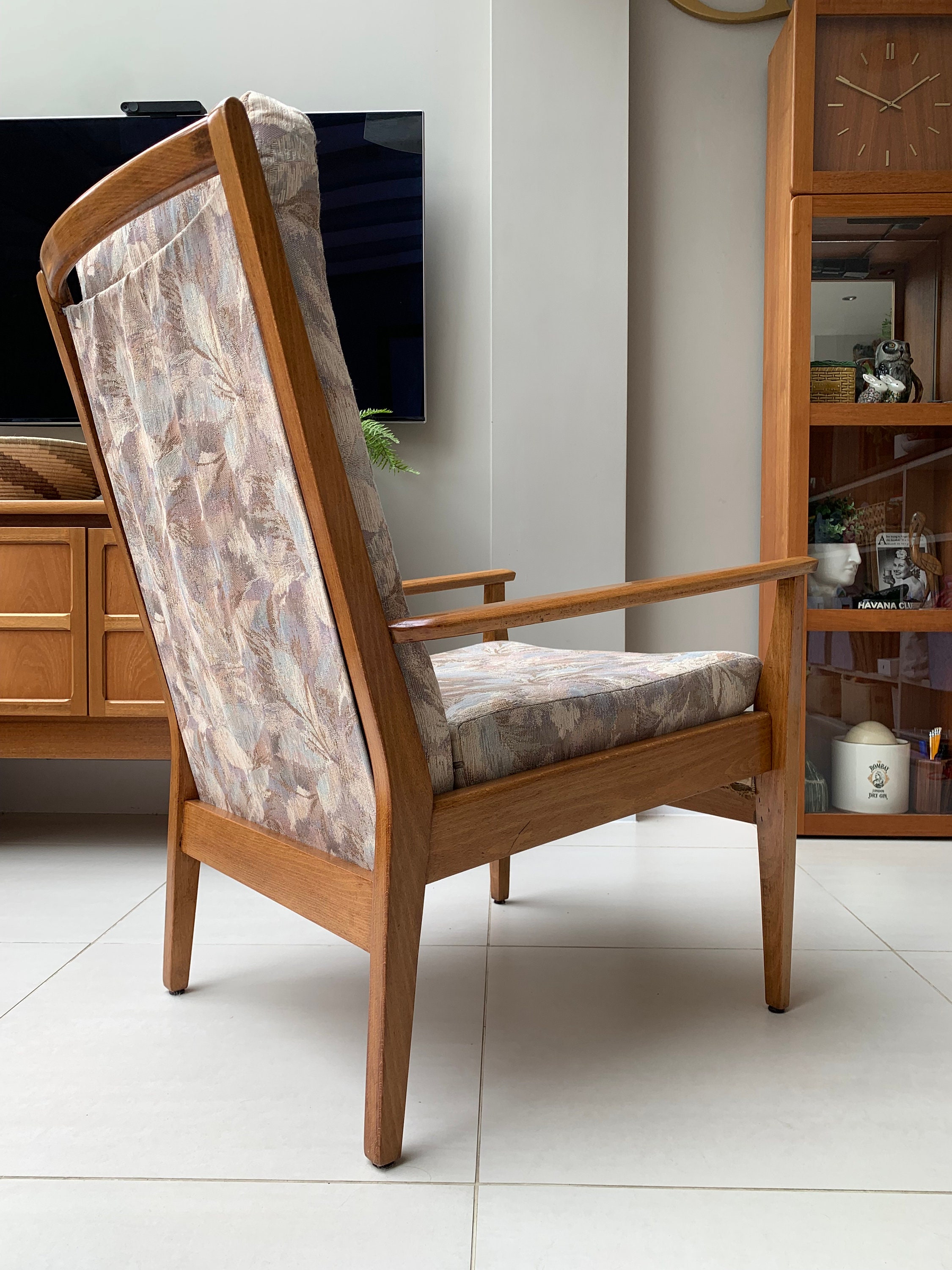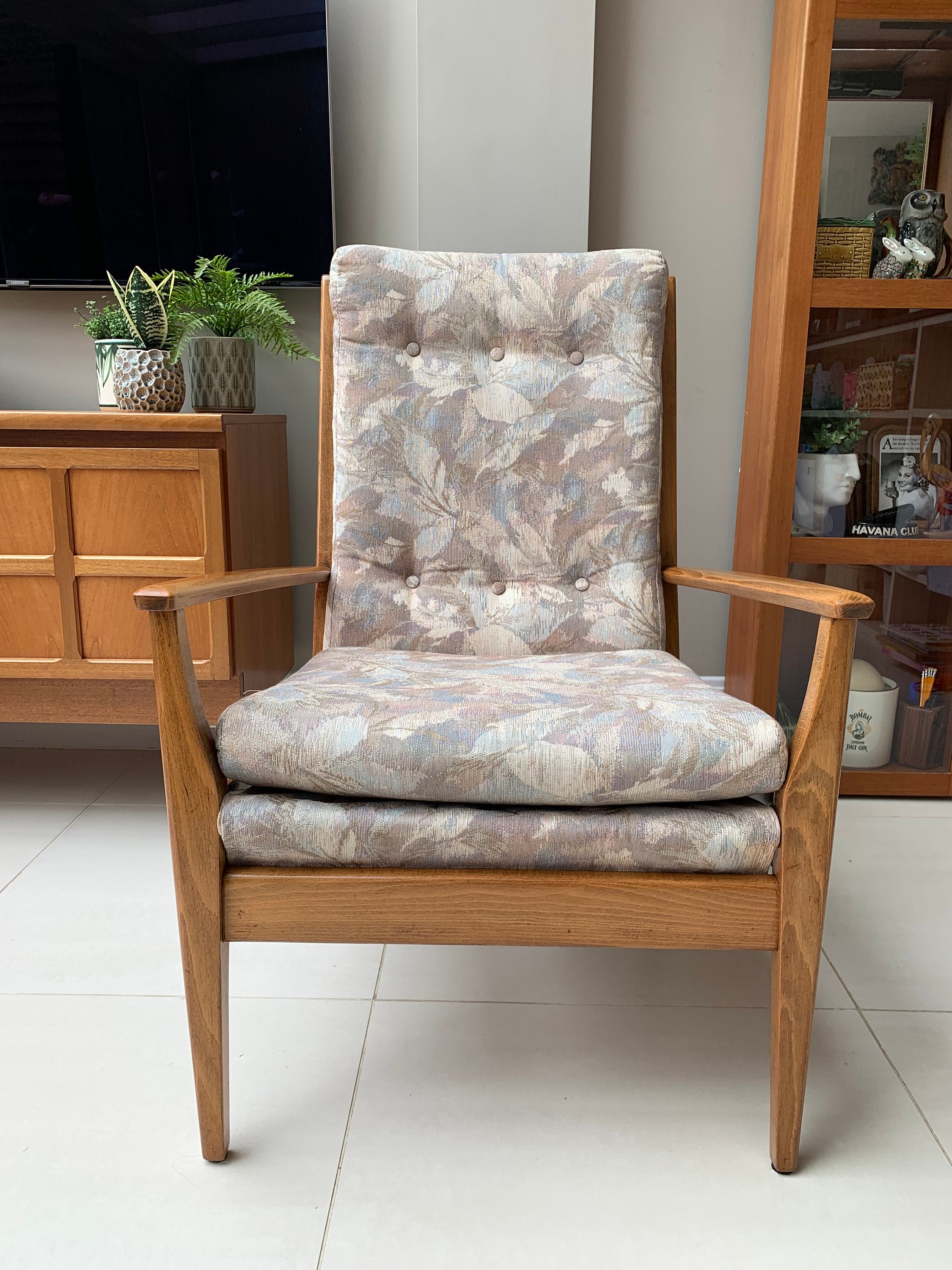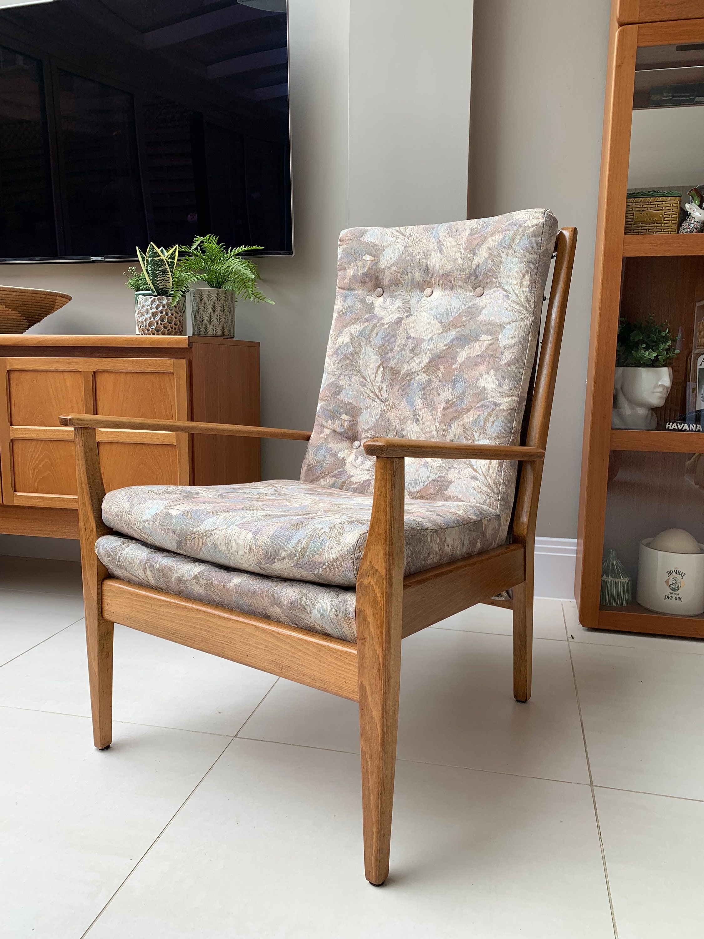 These vintage chairs were the best I’d seen and at a reasonable price too. Although the material was in excellent condition for its age I am having them recovered in an olive velvet to match my decor, but also to upgrade the original foam to fire retardant material. Would definitely recommend this seller and the courier company they used. So pleased :) Thank you