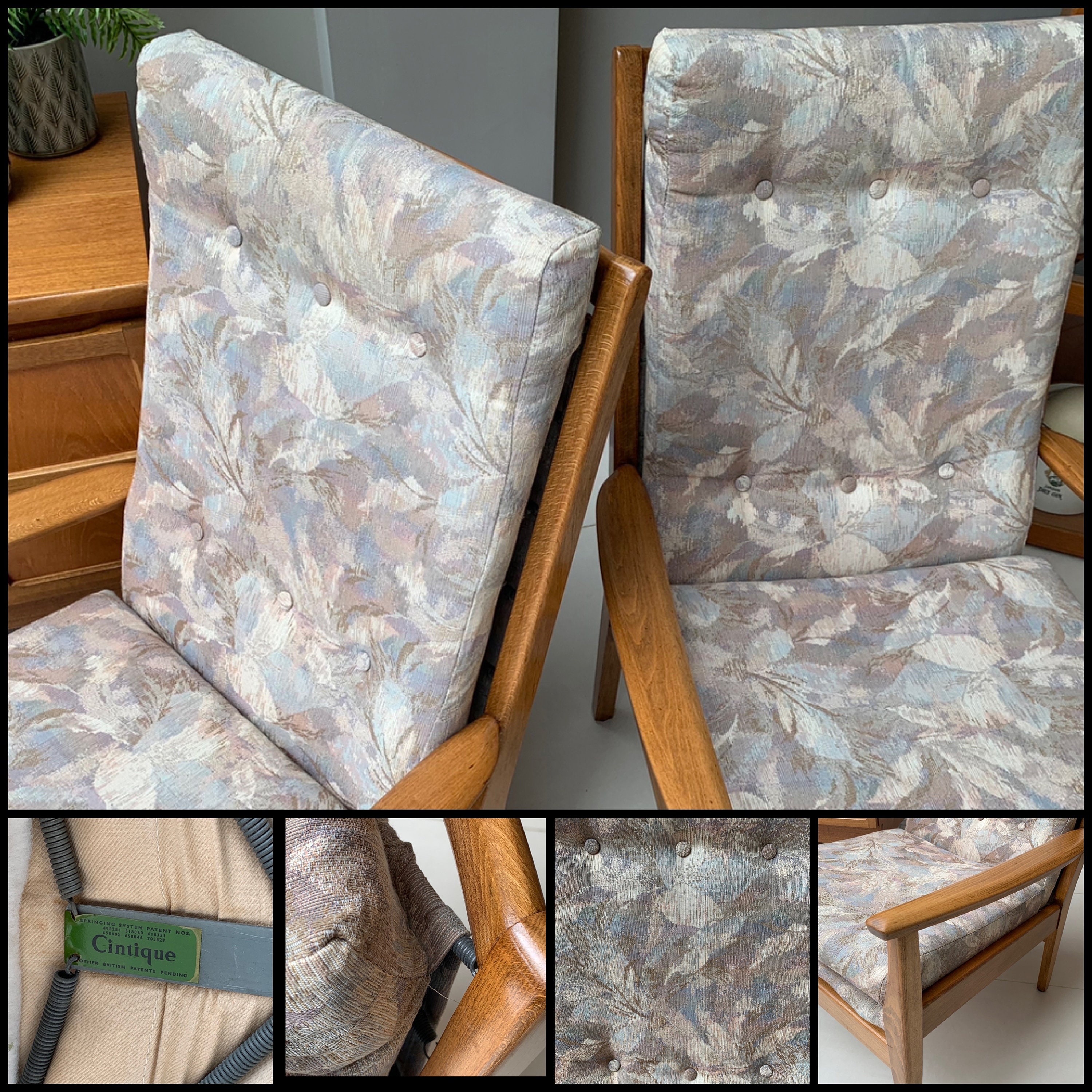 Founded by Jack Cinnamon, Cintique Furniture’s armchairs combine high quality materials and coil springs for comfort. Cintique Furniture was a mid-century English firm that followed the Danish-design taste of the times. During the late 1950s and 60s Cintique specialised in modern, contemporary furniture. It capitalised on the trend toward clean Danish lines. Today, Cintique furniture from the mid century retro period has become prized for its elegant proportions, attractive design and excellent build quality.