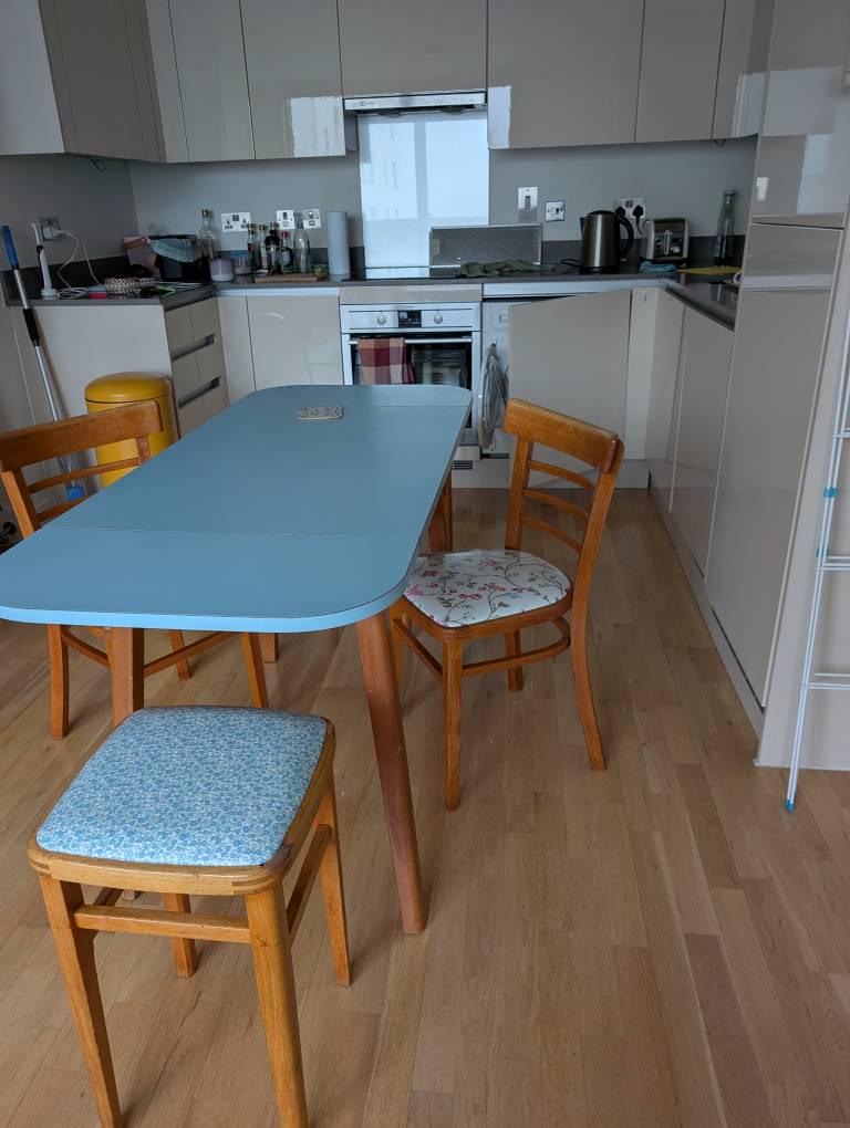 ✔ Freshly upholstered in wipe-clean oilcloth – Perfect for kids, coffee shops, or home use