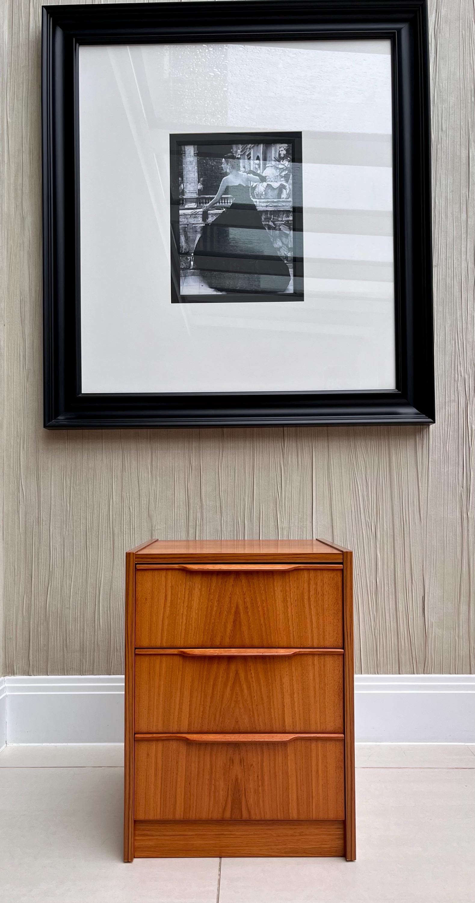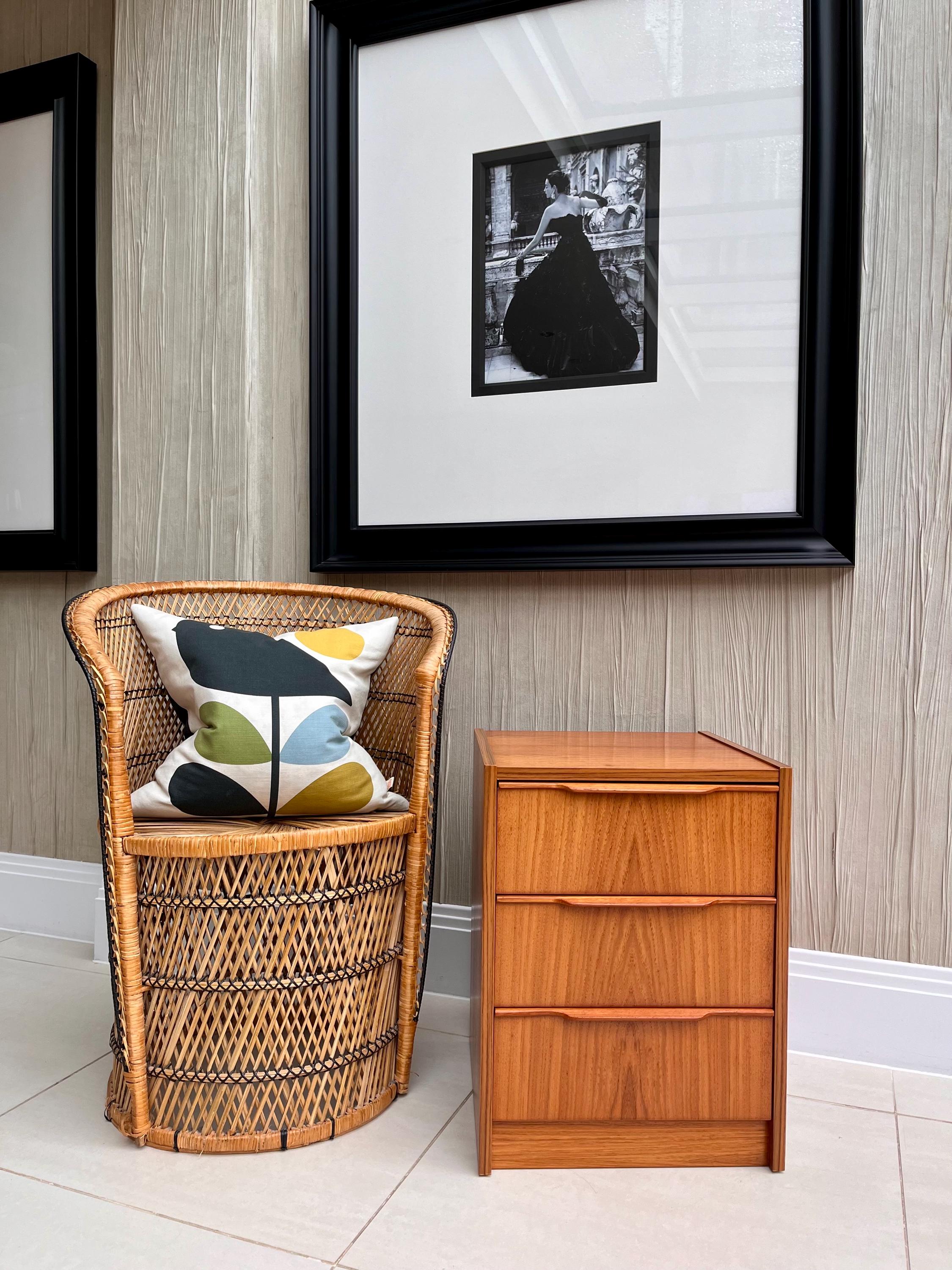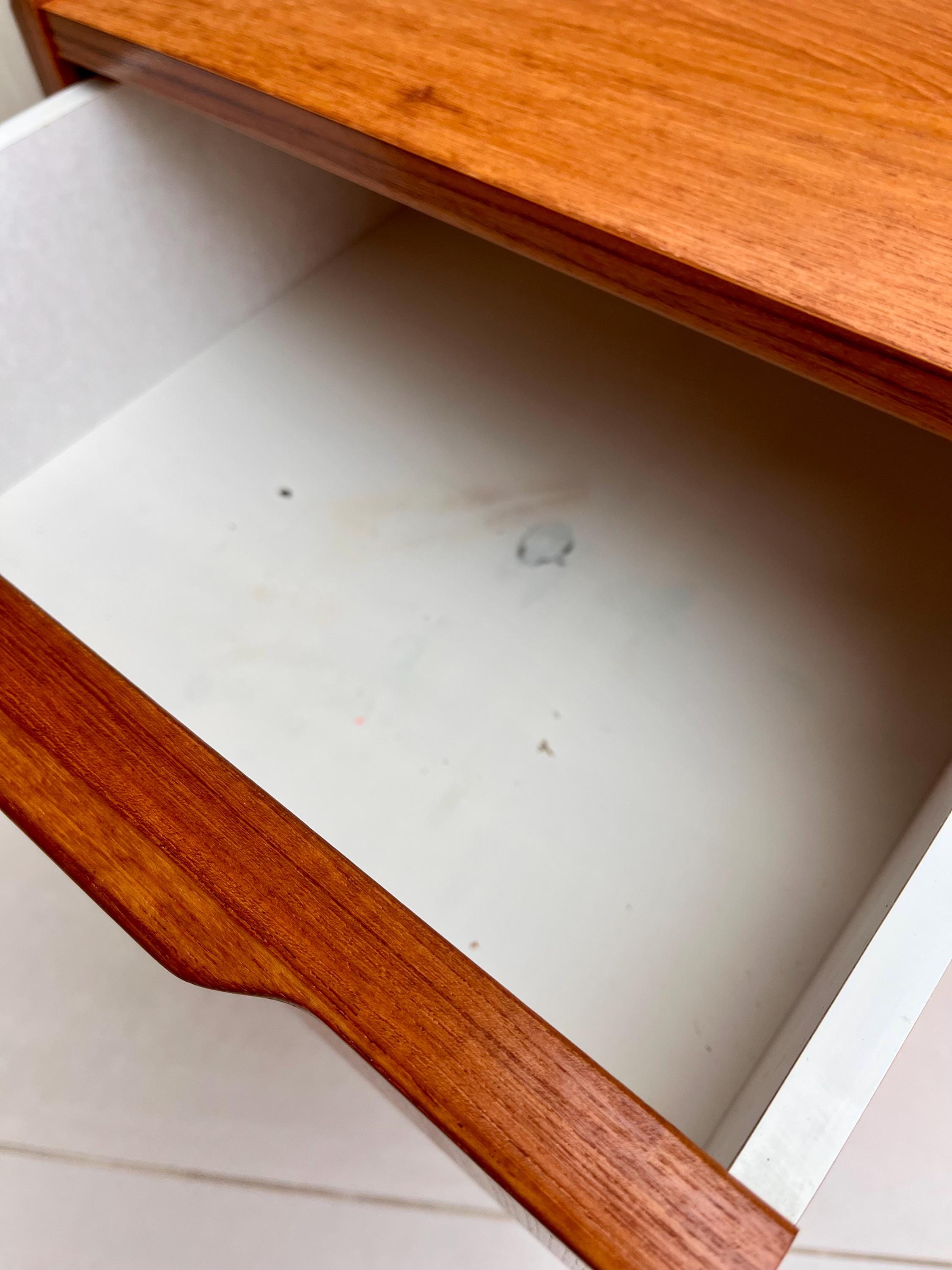 Likely designed as a bedside cabinet, this versatile piece works equally well as a side table, hallway storage, or a compact office unit. Its timeless Danish/Scandi lines mean it blends seamlessly into both vintage and modern interiors.