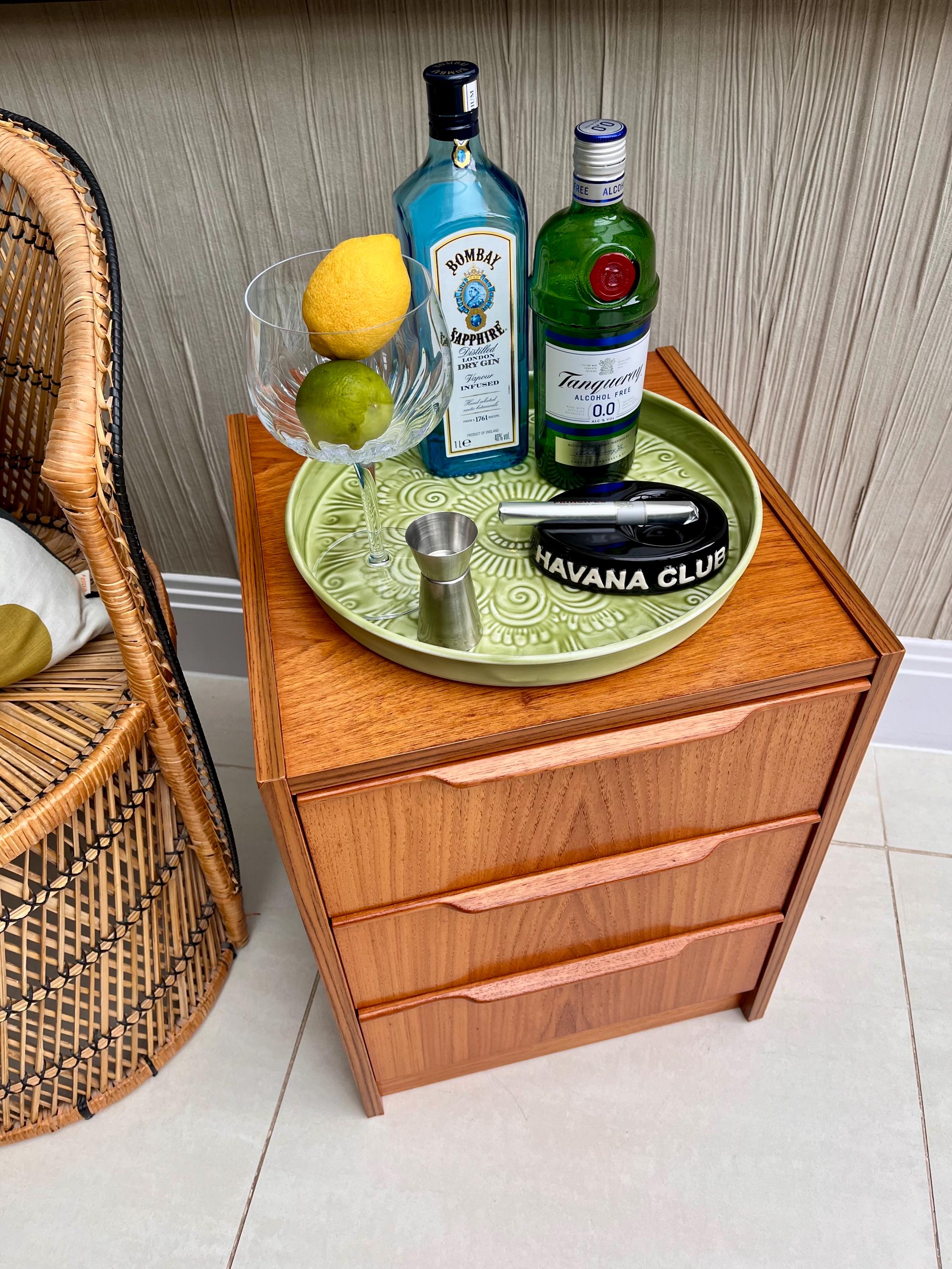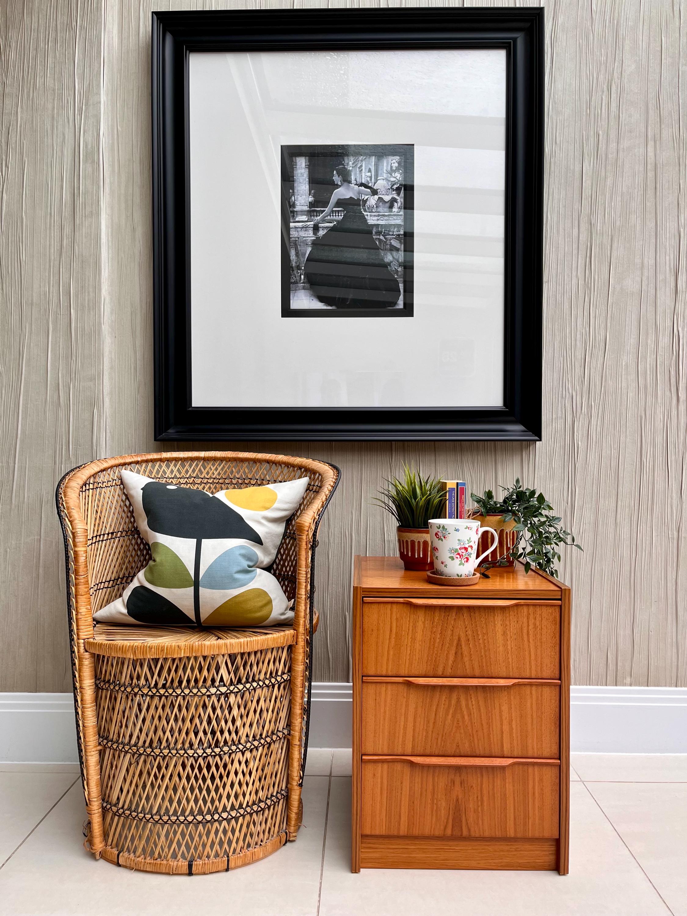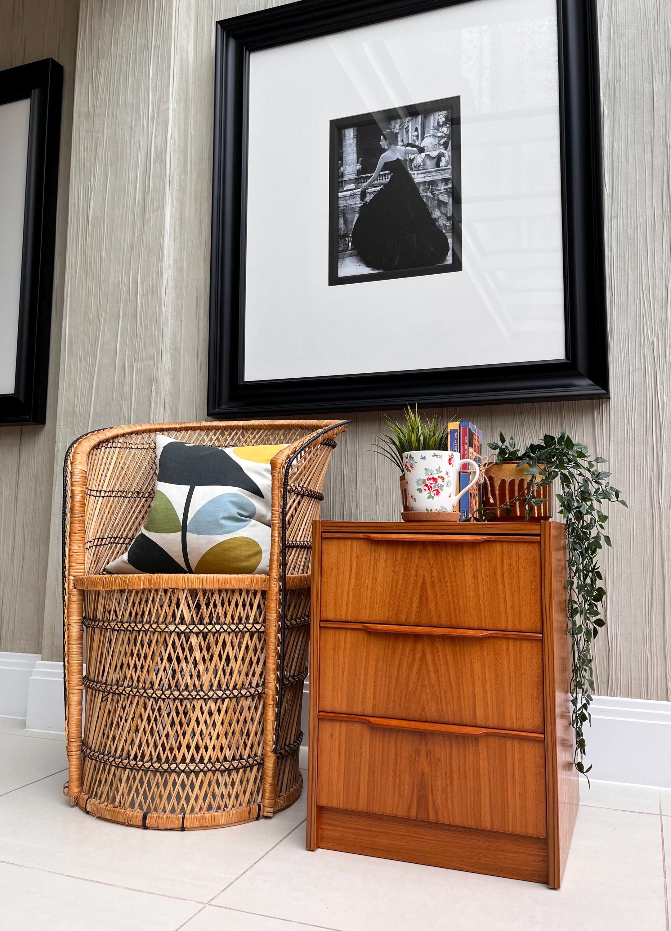 Likely designed as a bedside cabinet, this versatile piece works equally well as a side table, hallway storage, or a compact office unit. Its timeless Danish/Scandi lines mean it blends seamlessly into both vintage and modern interiors.