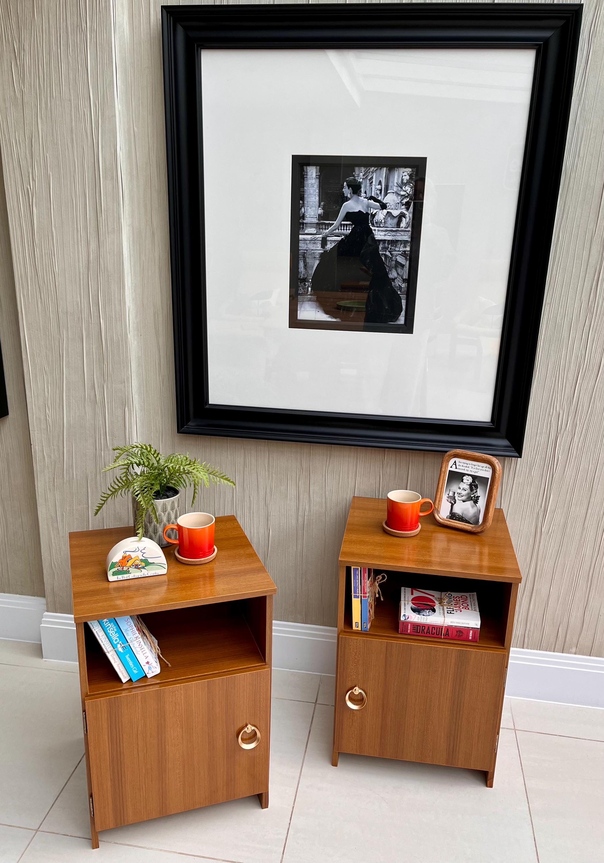 A versatile and sustainable pair that will sit beautifully as bedside tables, side cabinets, or compact storage units, blending effortlessly into both vintage-inspired and contemporary interiors. A very affordable way to add authentic mid-century design to your home.
