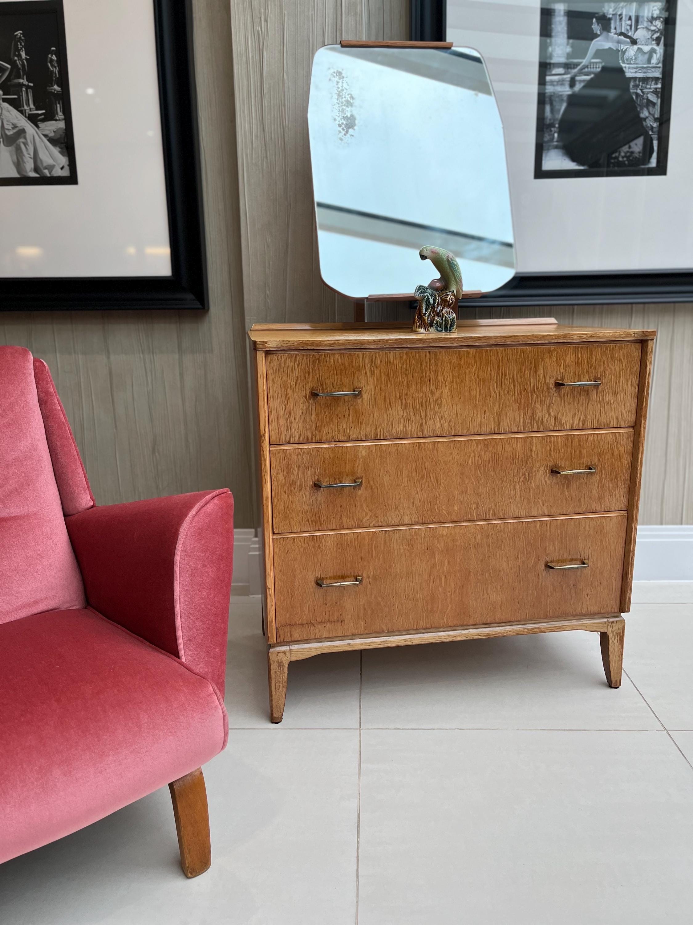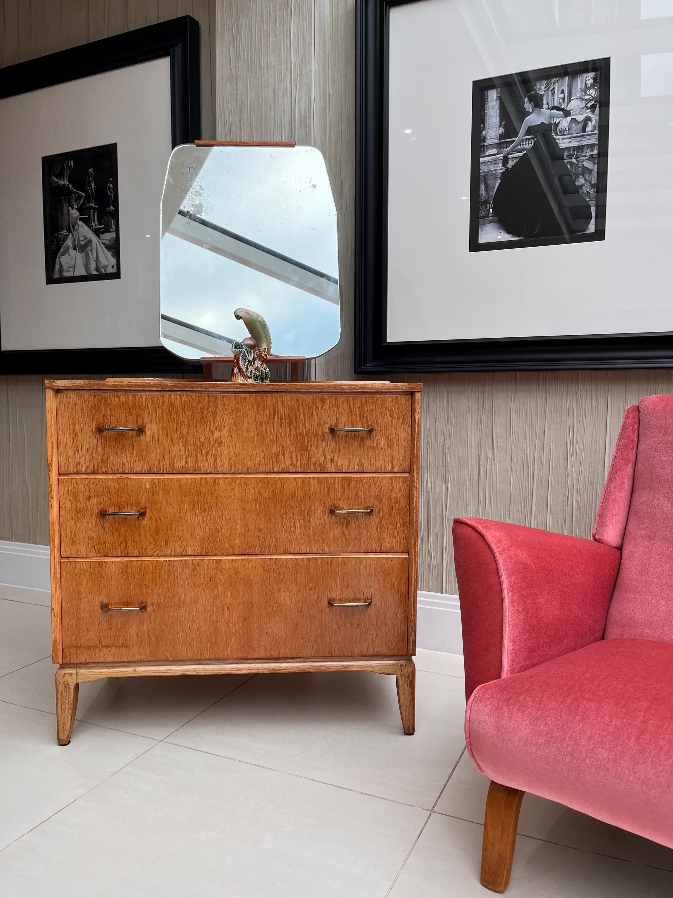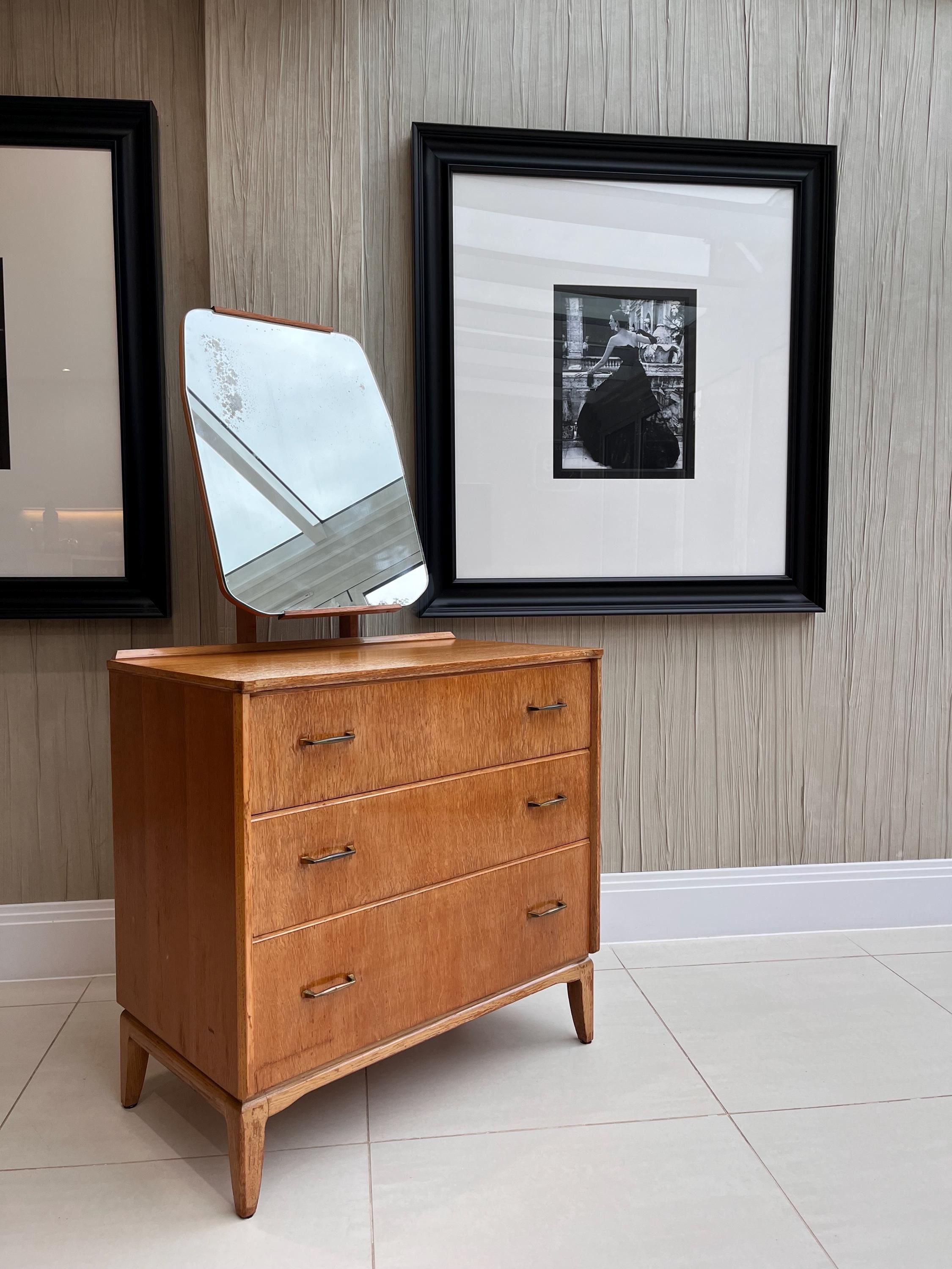 A perfect piece for collectors of authentic mid-century British furniture, or anyone seeking a sustainable, well-crafted alternative to modern flat-pack. Ideal in a bedroom, guest room, or hallway, either as a dressing table or a standalone chest once the mirror is removed.