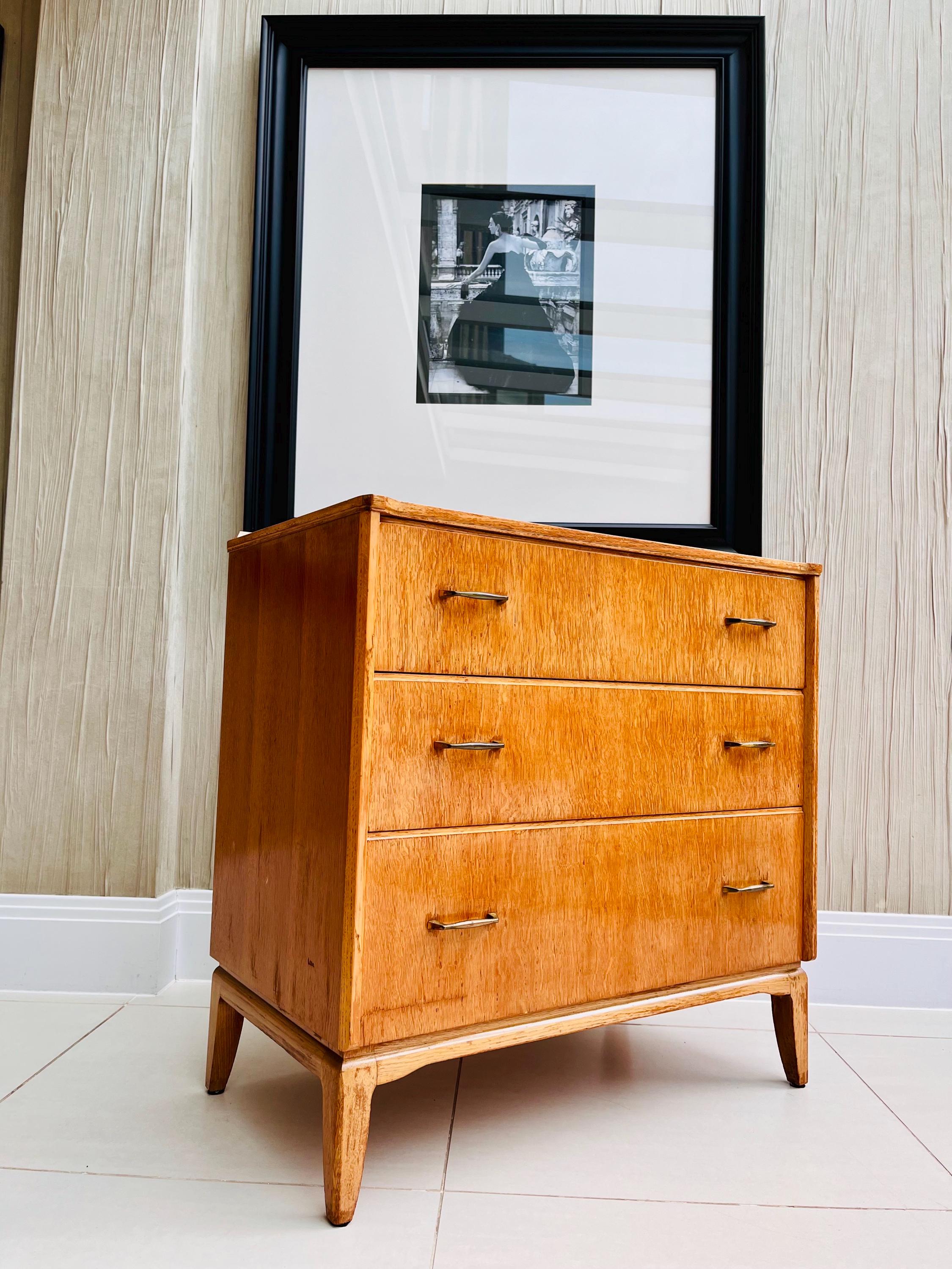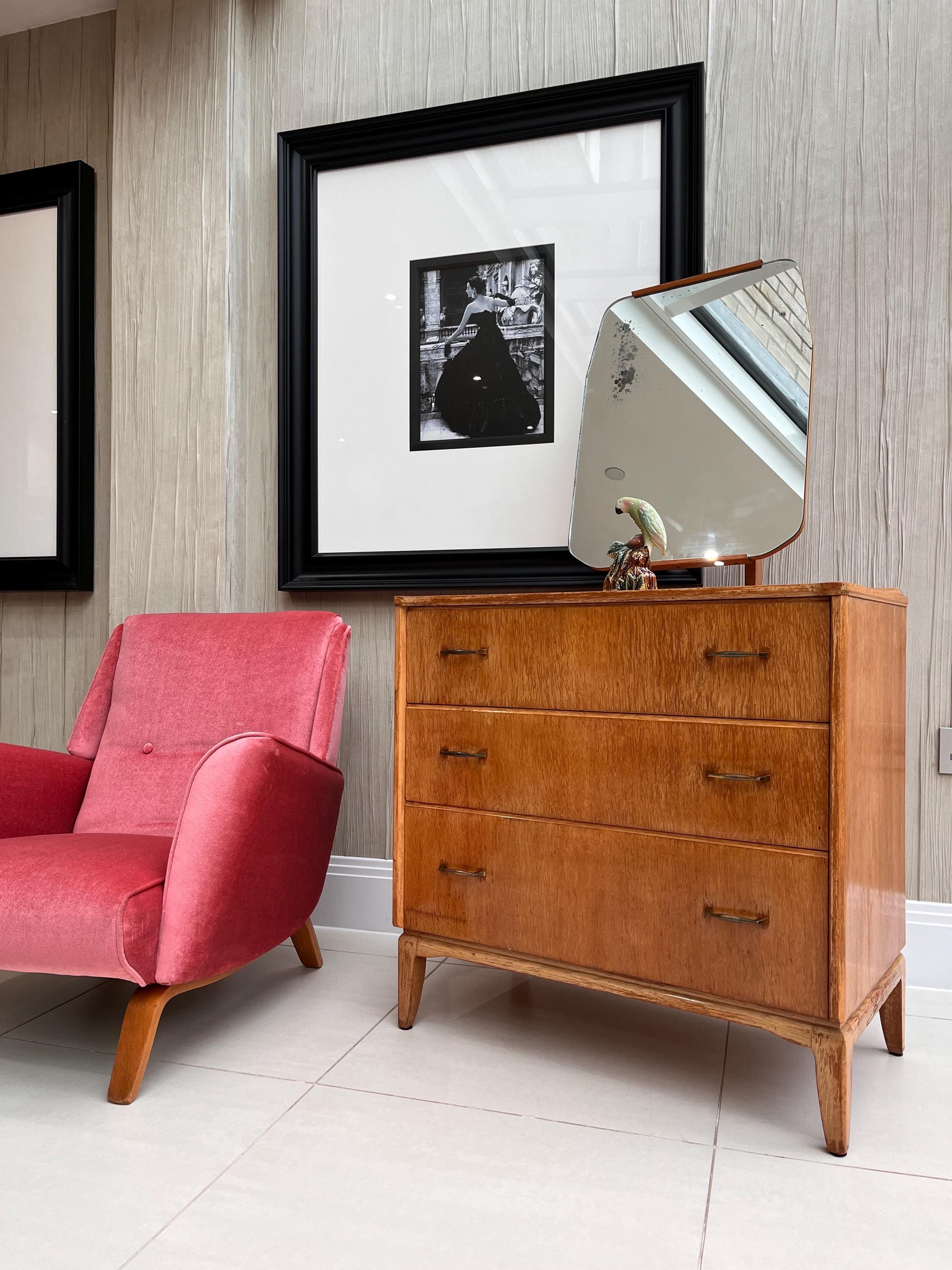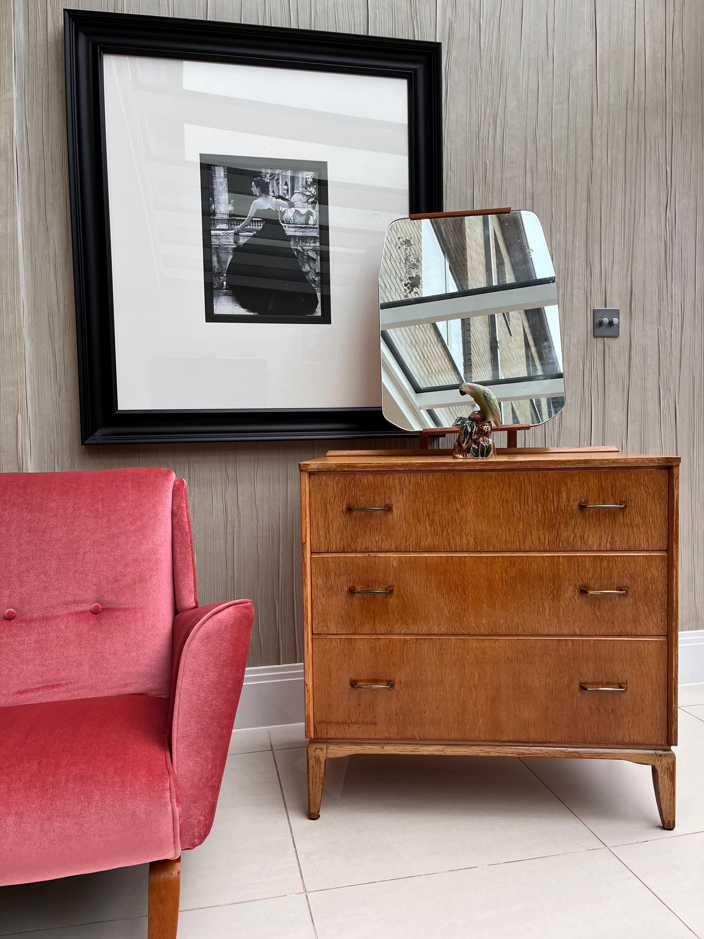 A perfect piece for collectors of authentic mid-century British furniture, or anyone seeking a sustainable, well-crafted alternative to modern flat-pack. Ideal in a bedroom, guest room, or hallway, either as a dressing table or a standalone chest once the mirror is removed.
