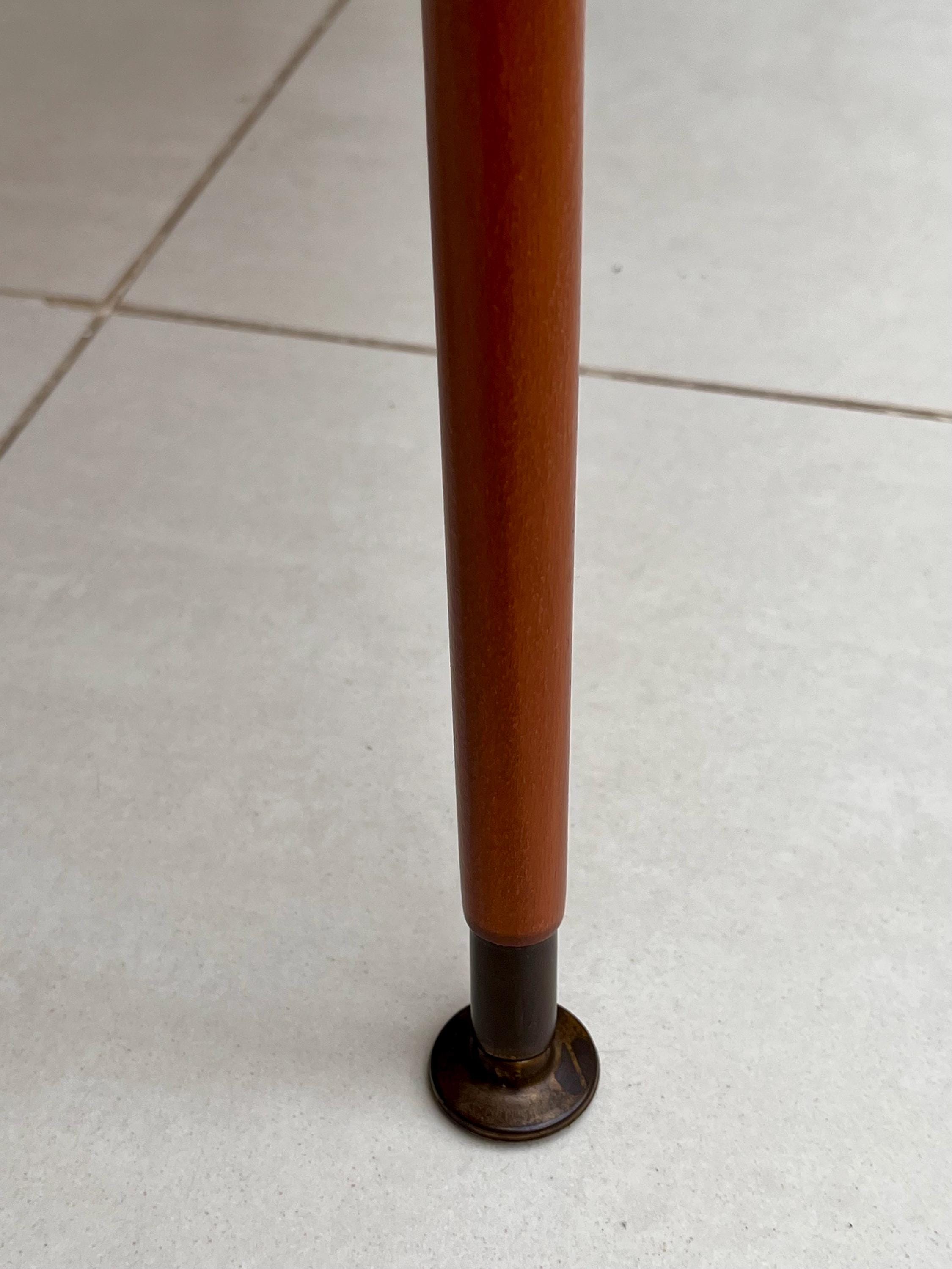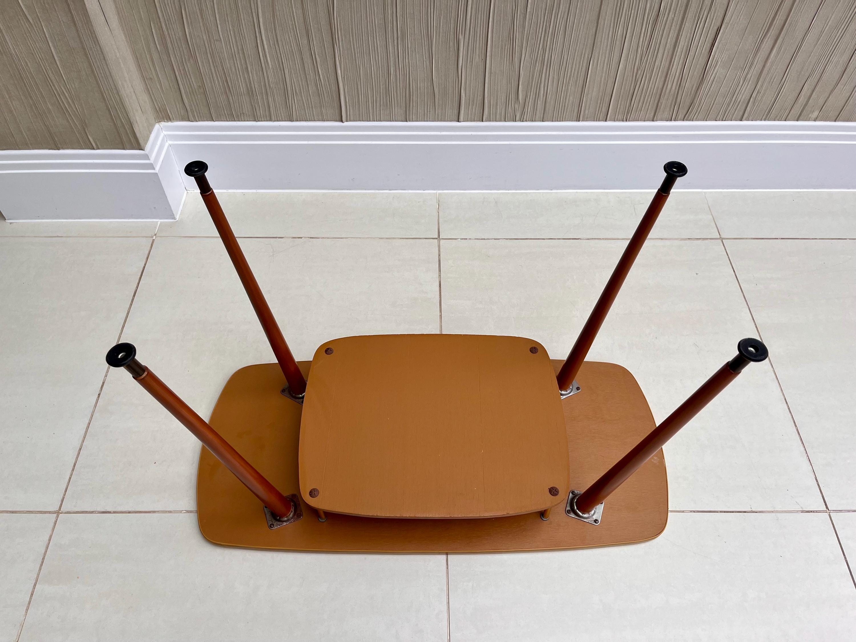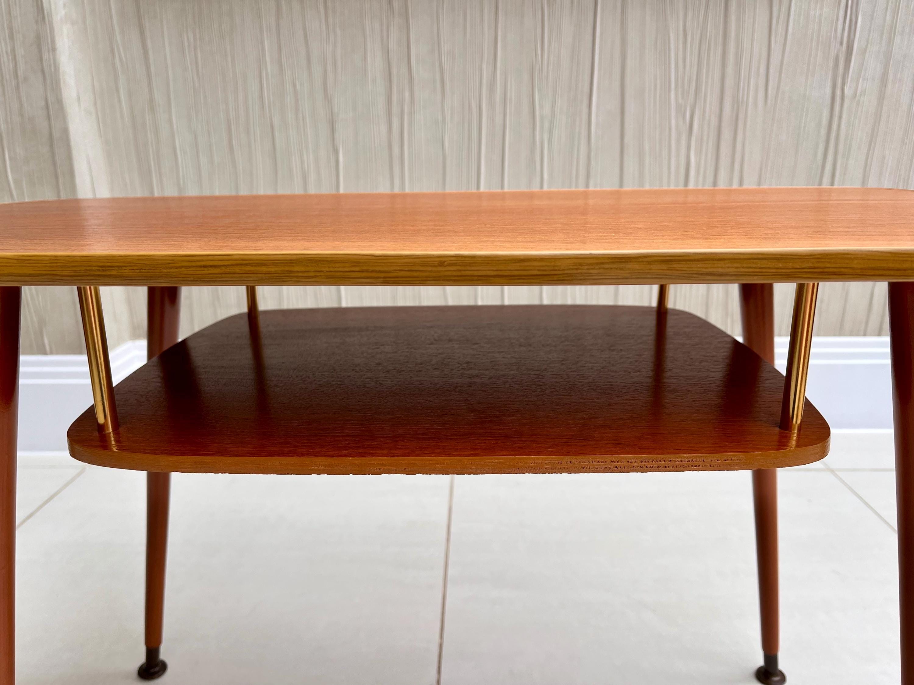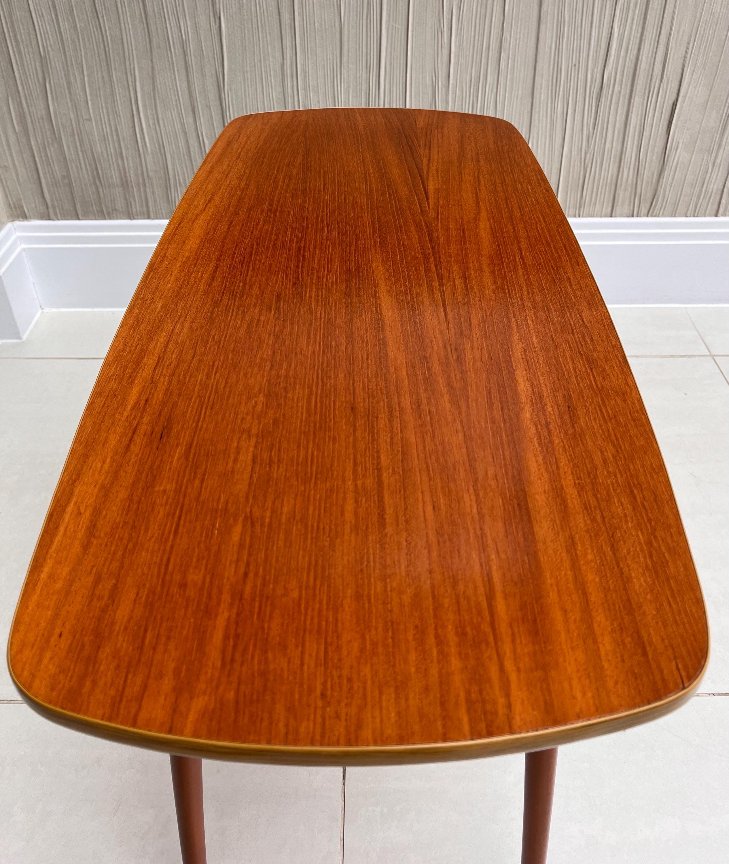 A beautifully designed compact mid-century style coffee or side table, perfect for modern living where space is at a premium. This is a later piece, inspired by classic 1950s–60s mid-century design, capturing that elegant vintage aesthetic with its clean lines, slender tapered legs, and warm wood tones.