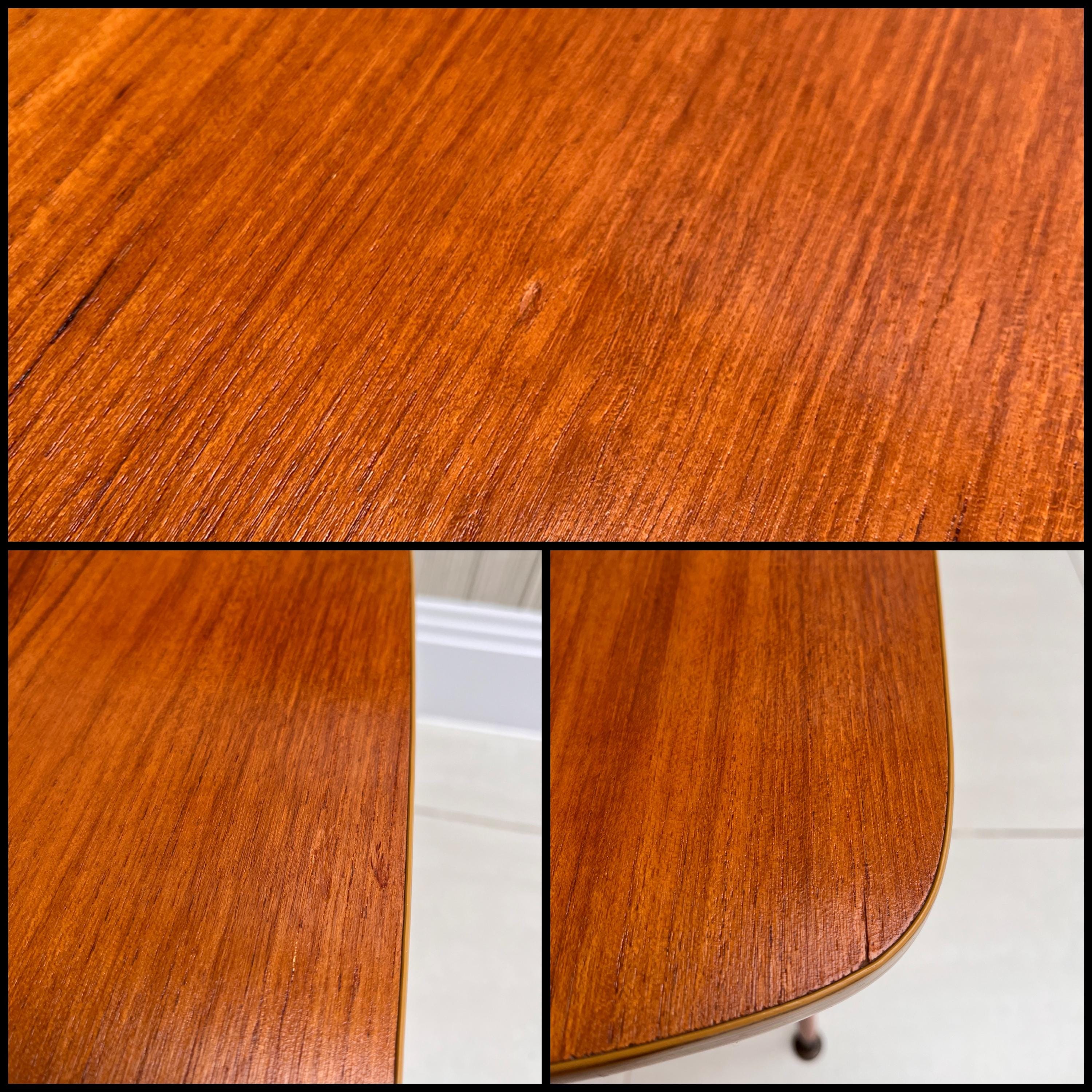 Although a later piece, it draws clear influence from the clean-lined Scandinavian and British modernist designs of the 1950s–60s — simple, functional and beautifully proportioned. The veneered surfaces are smooth and well cared for, with no deep scratches or stains; the edging is intact and the slender legs stand firm and secure.