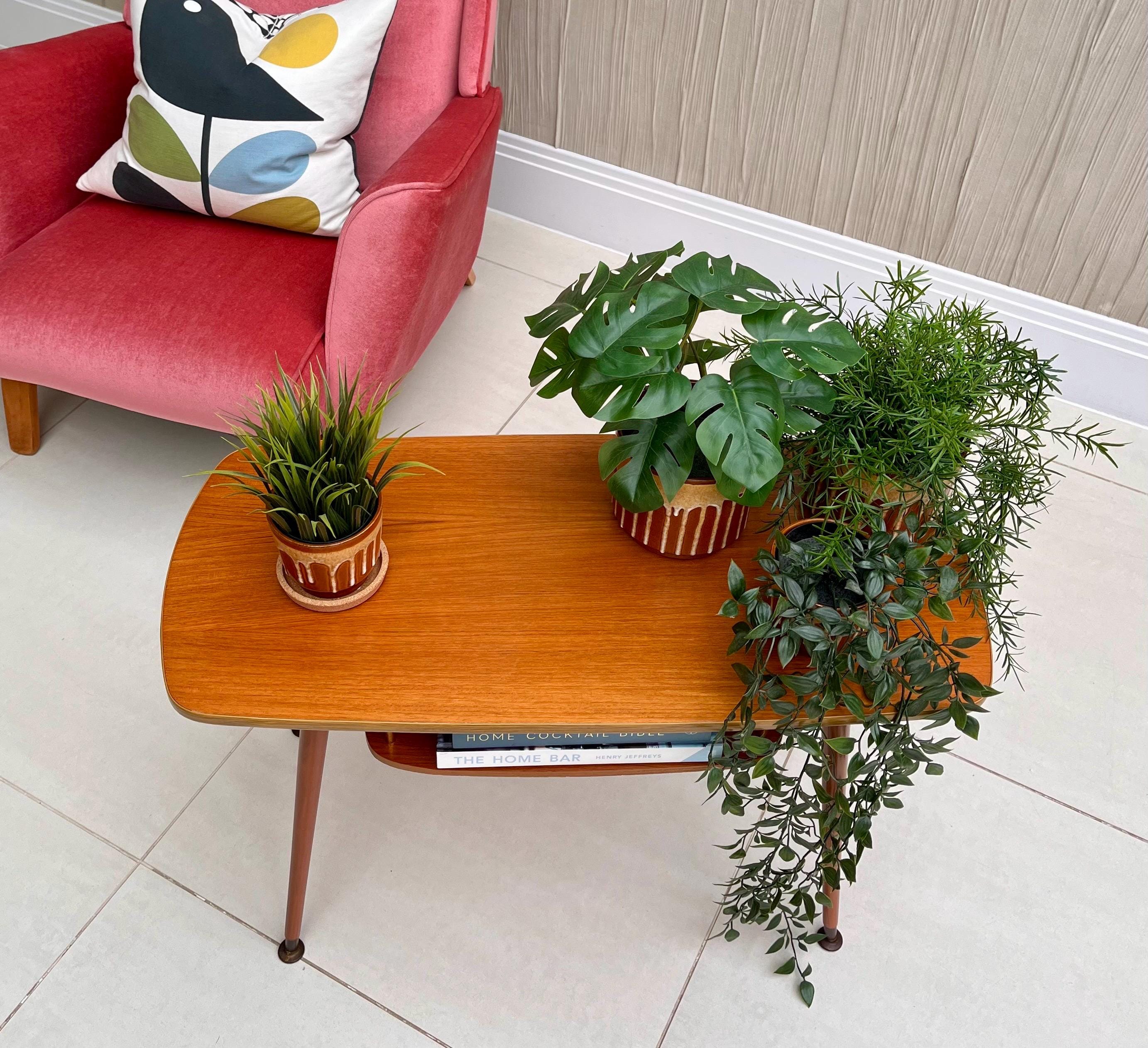 A stylish and compact mid-century inspired table that offers an affordable way to bring vintage charm into smaller or modern homes. It sits comfortably in Scandi, Japandi or boho-inspired interiors, pairing beautifully with natural materials like rattan, linen and greenery.