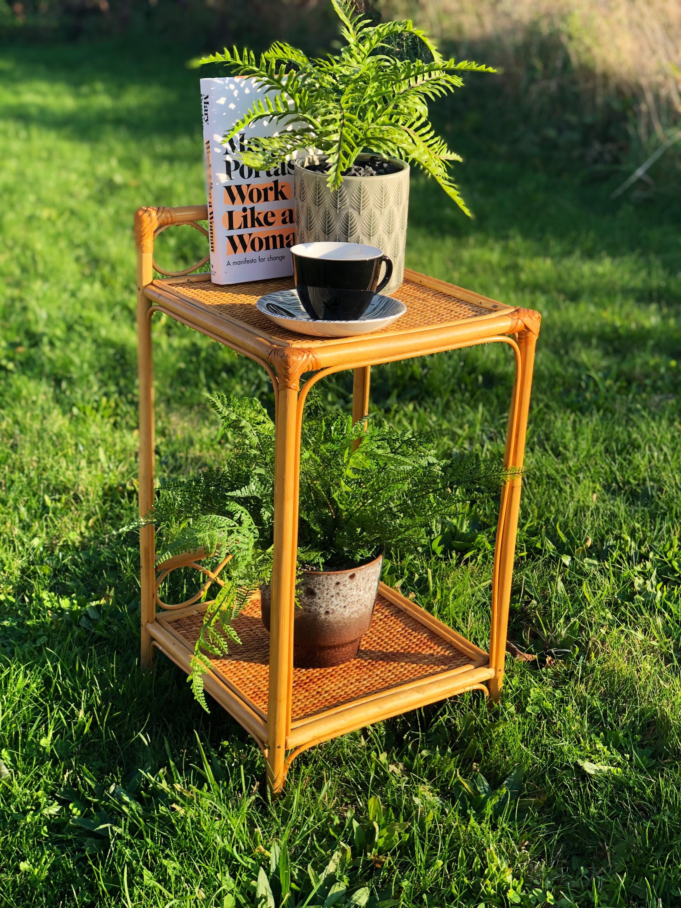 This beautifully crafted two-tier bamboo and rattan table offers both form and function. The woven rattan shelves create a soft, organic surface perfect for styling your favourite pieces — whether that’s a trailing plant, a stack of books, or a morning coffee beside your favourite chair.