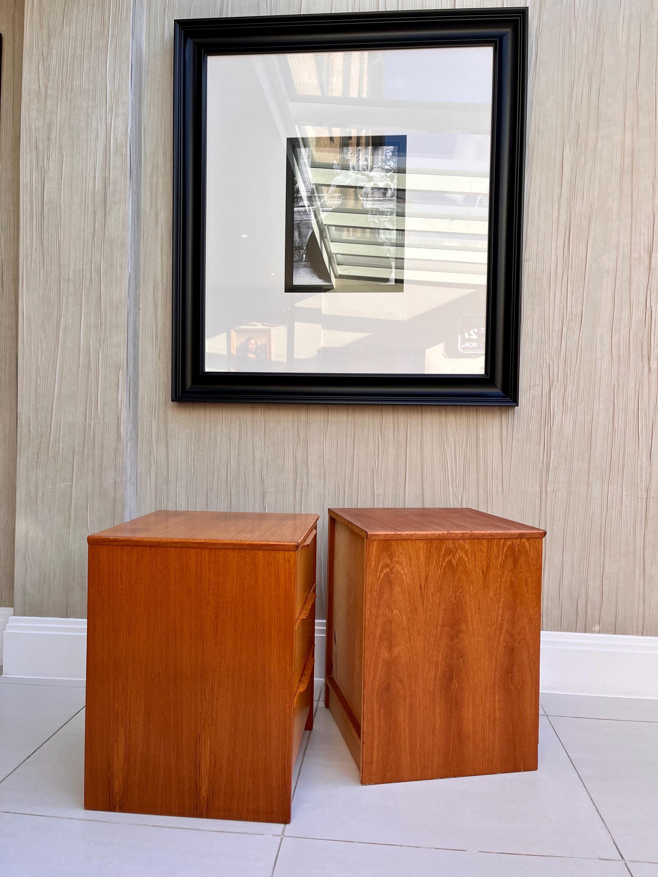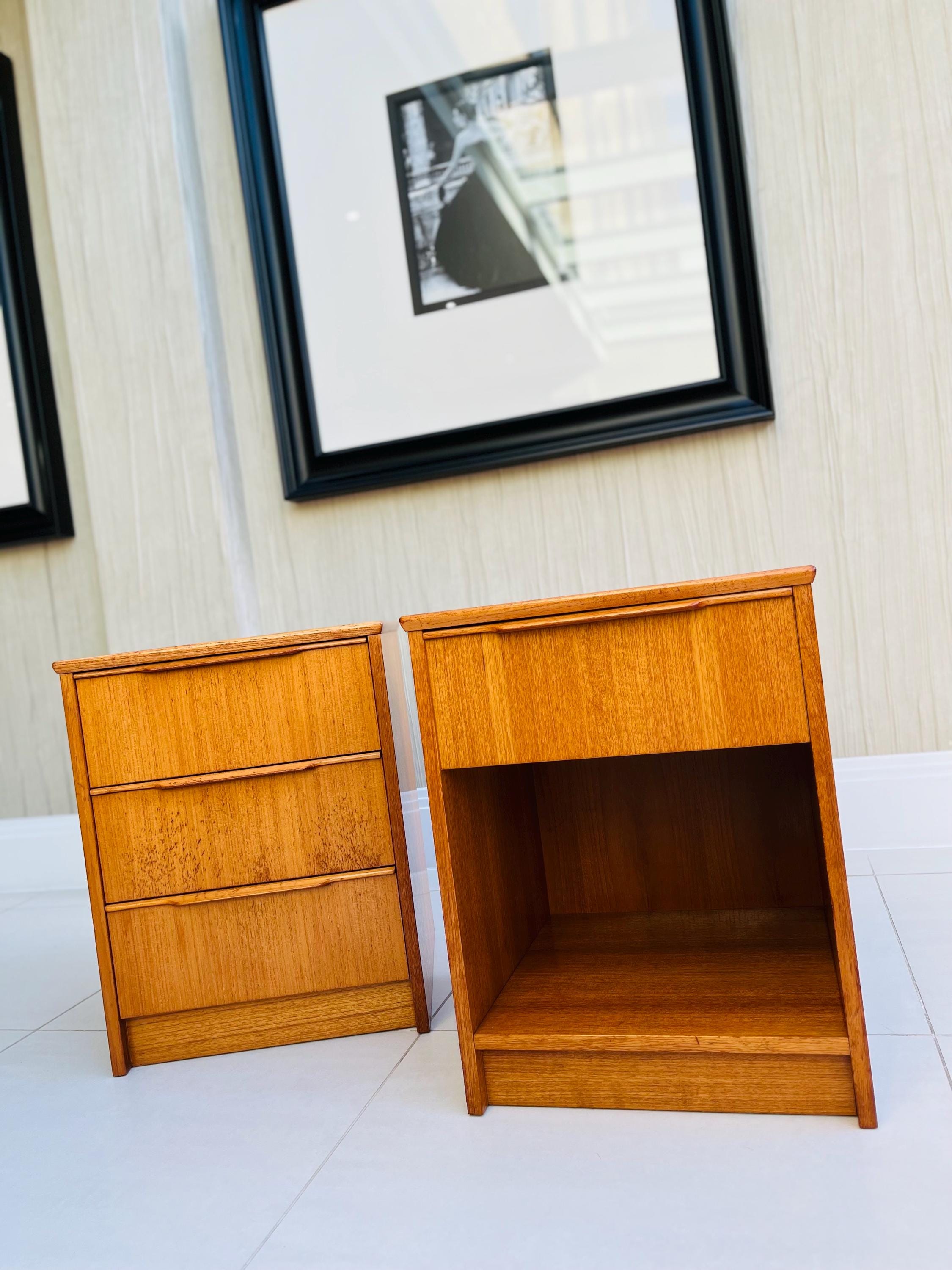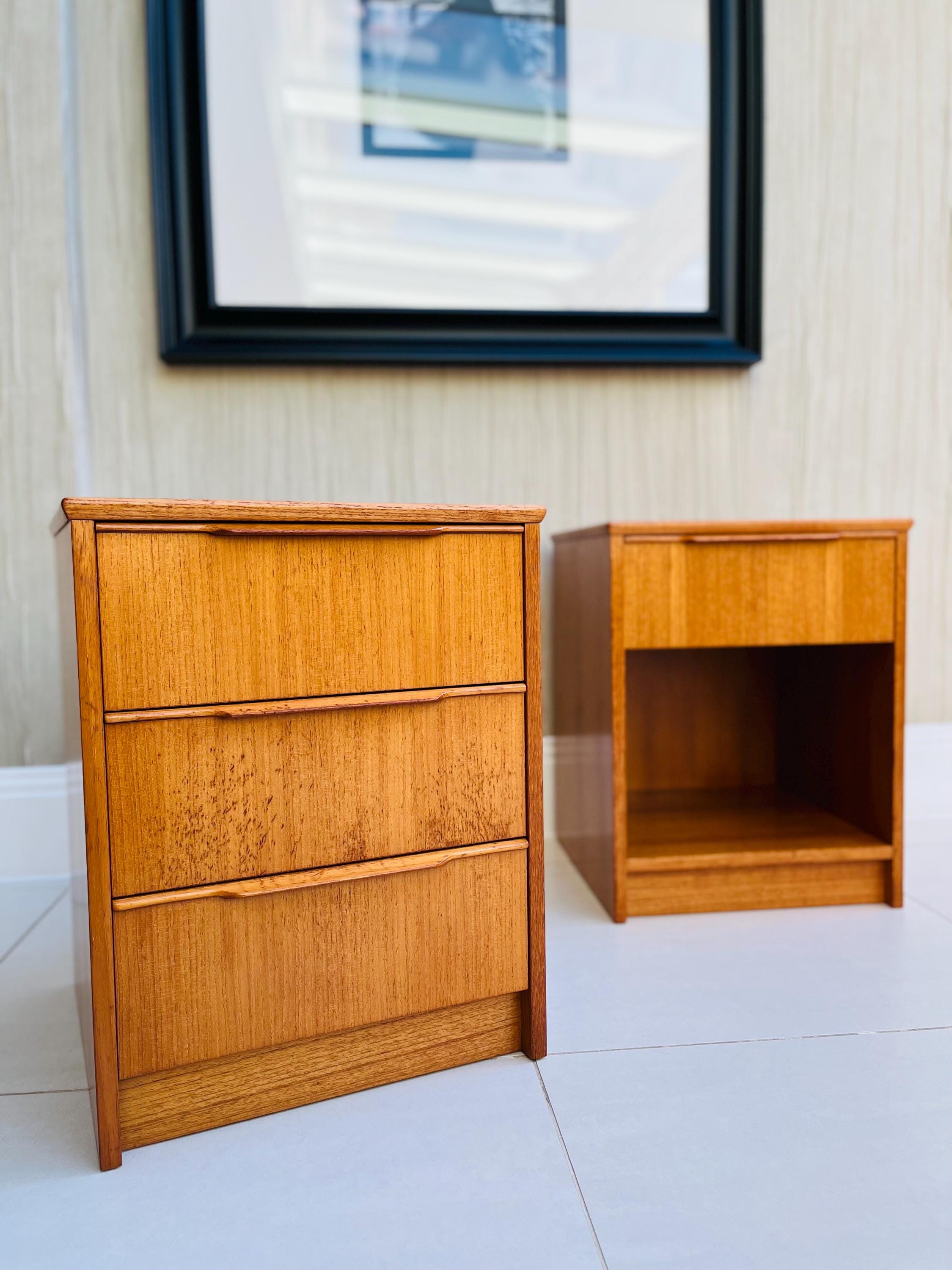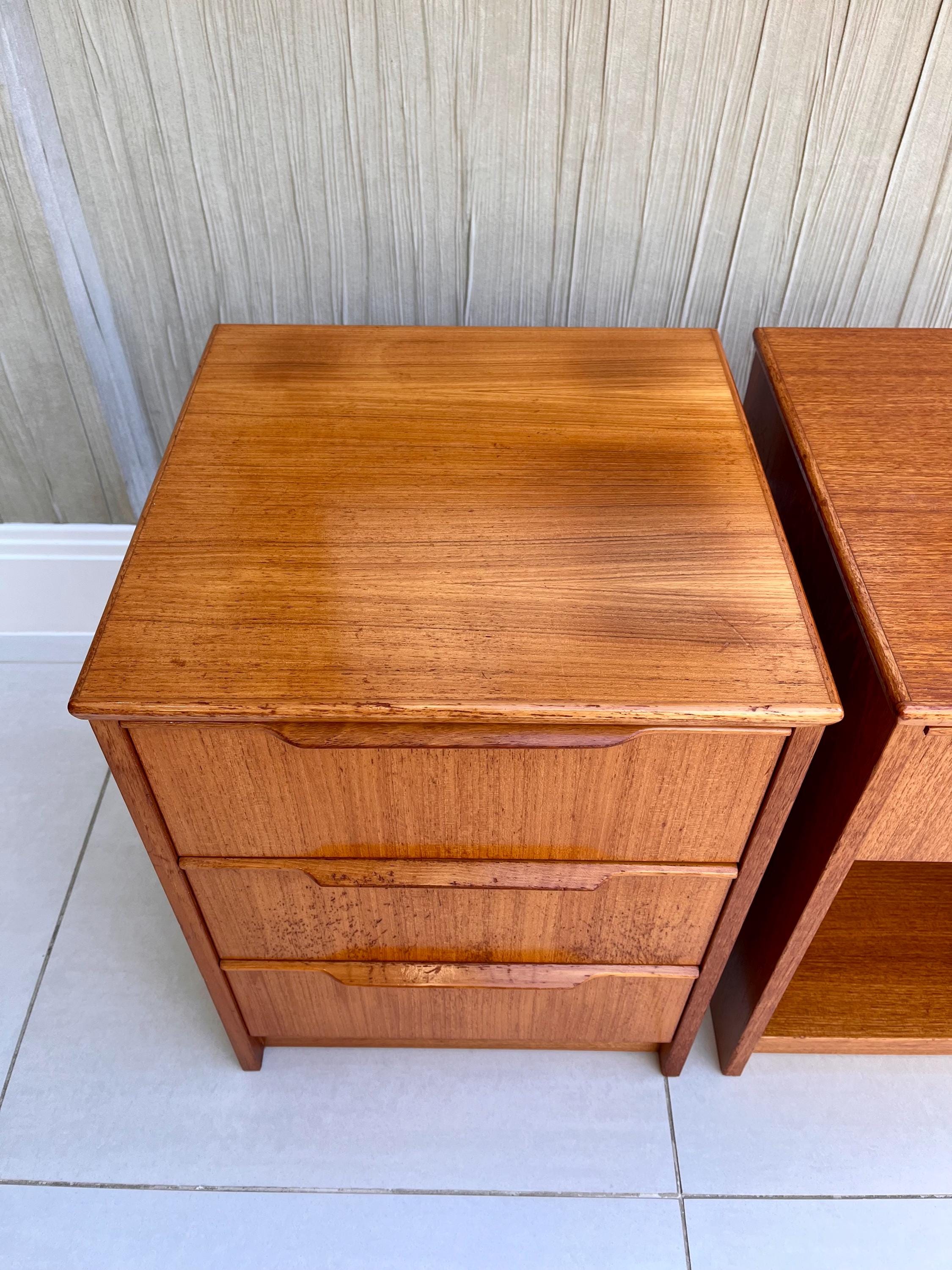 Both pieces present beautifully after careful cleaning and restoration, showing only age-related marks consistent with use. The drawers run smoothly, interiors are clean and odour-free, and the teak has been carefully nourished with Danish oil to bring out its natural warmth and character.