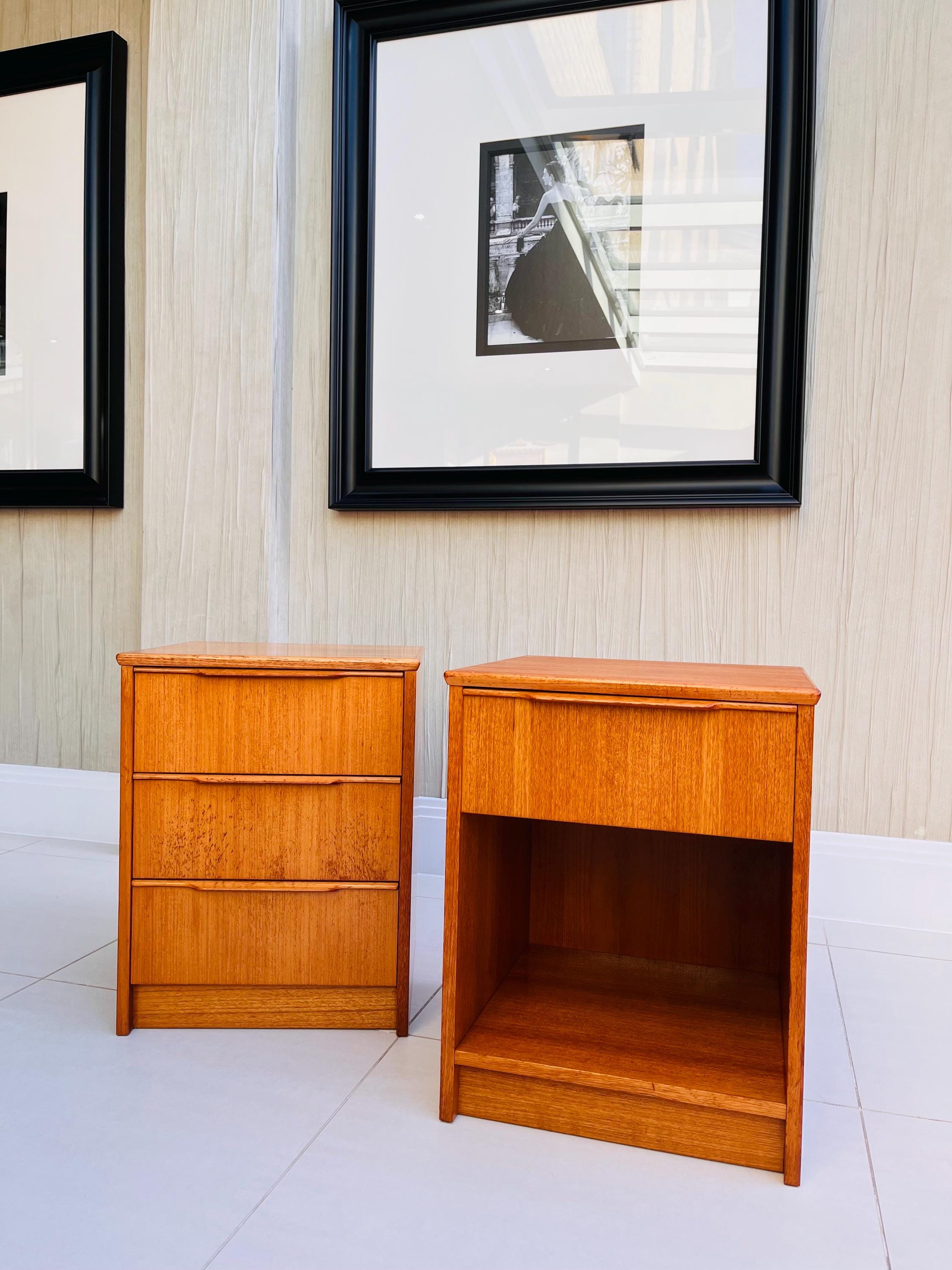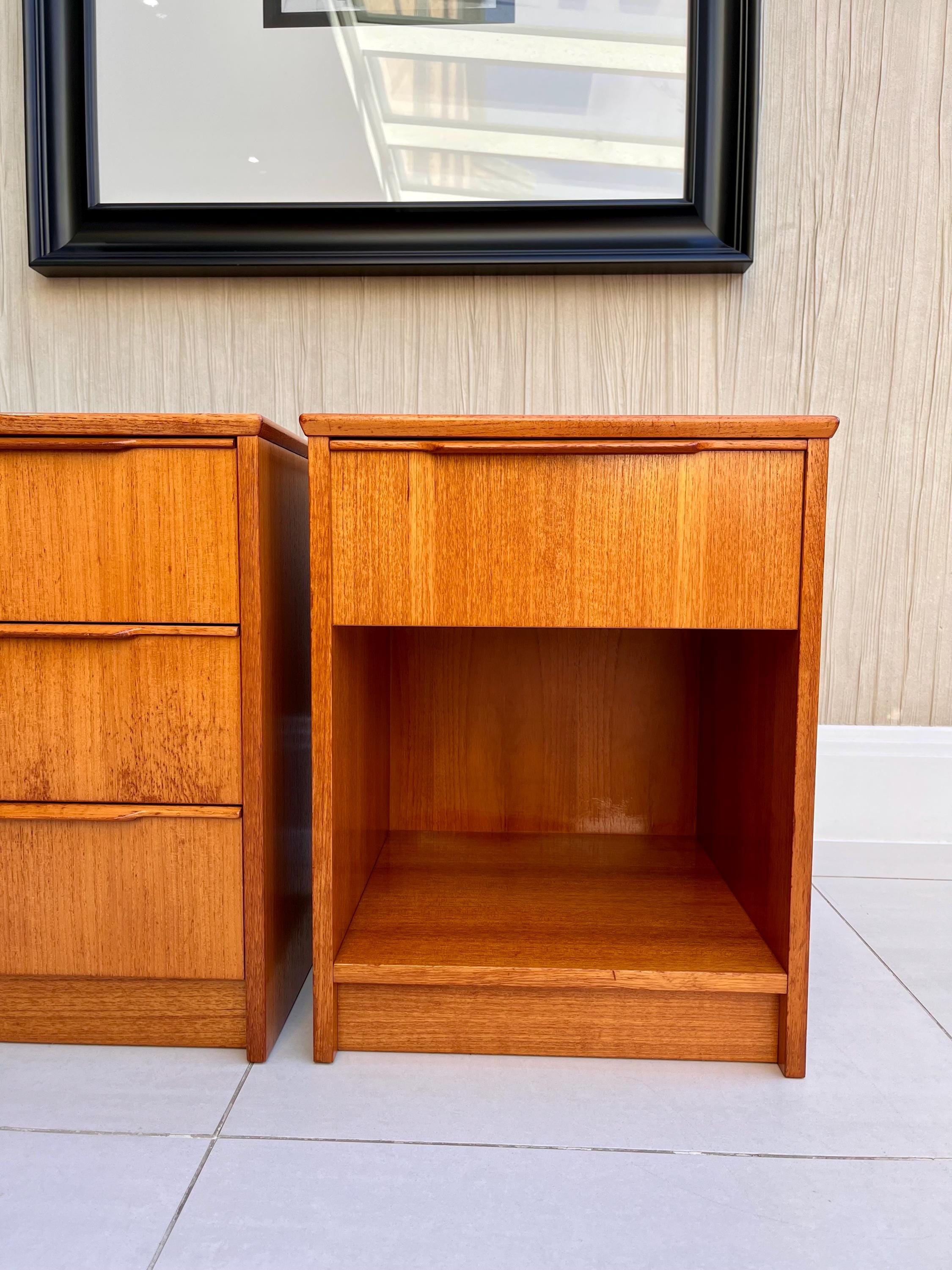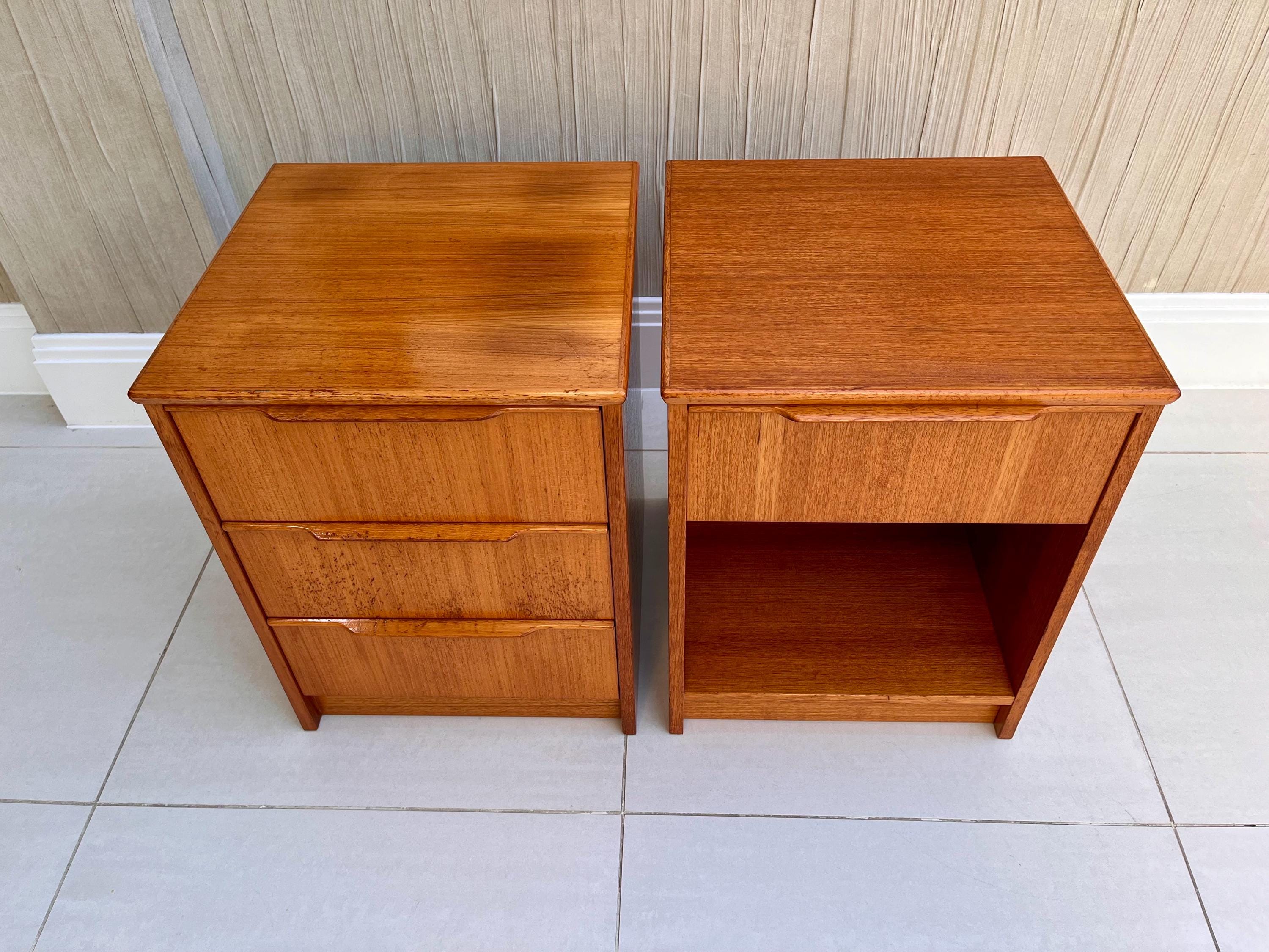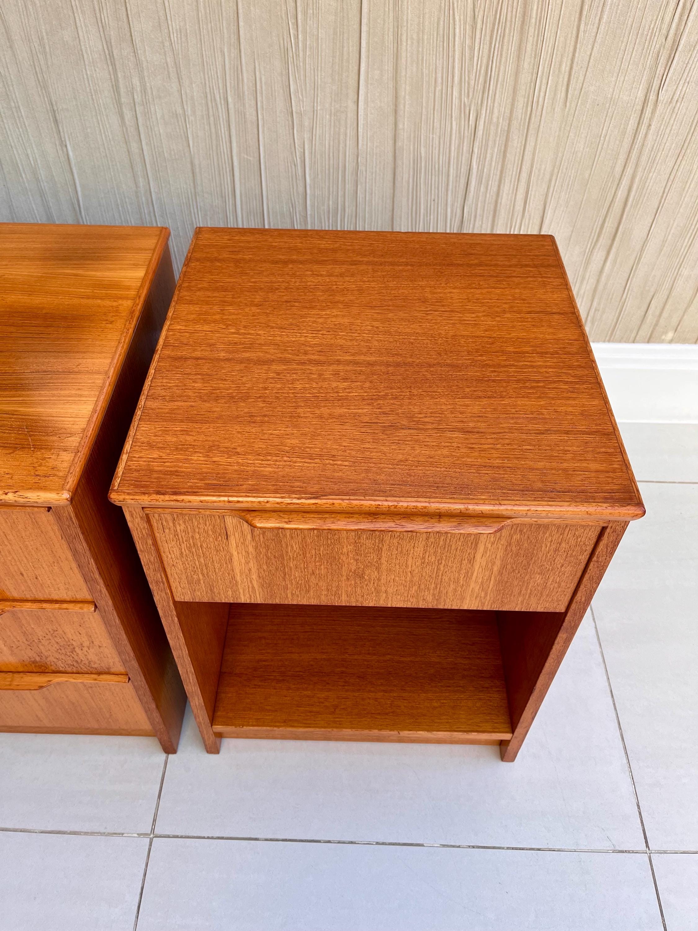 Both pieces present beautifully after careful cleaning and restoration, showing only age-related marks consistent with use. The drawers run smoothly, interiors are clean and odour-free, and the teak has been carefully nourished with Danish oil to bring out its natural warmth and character.
