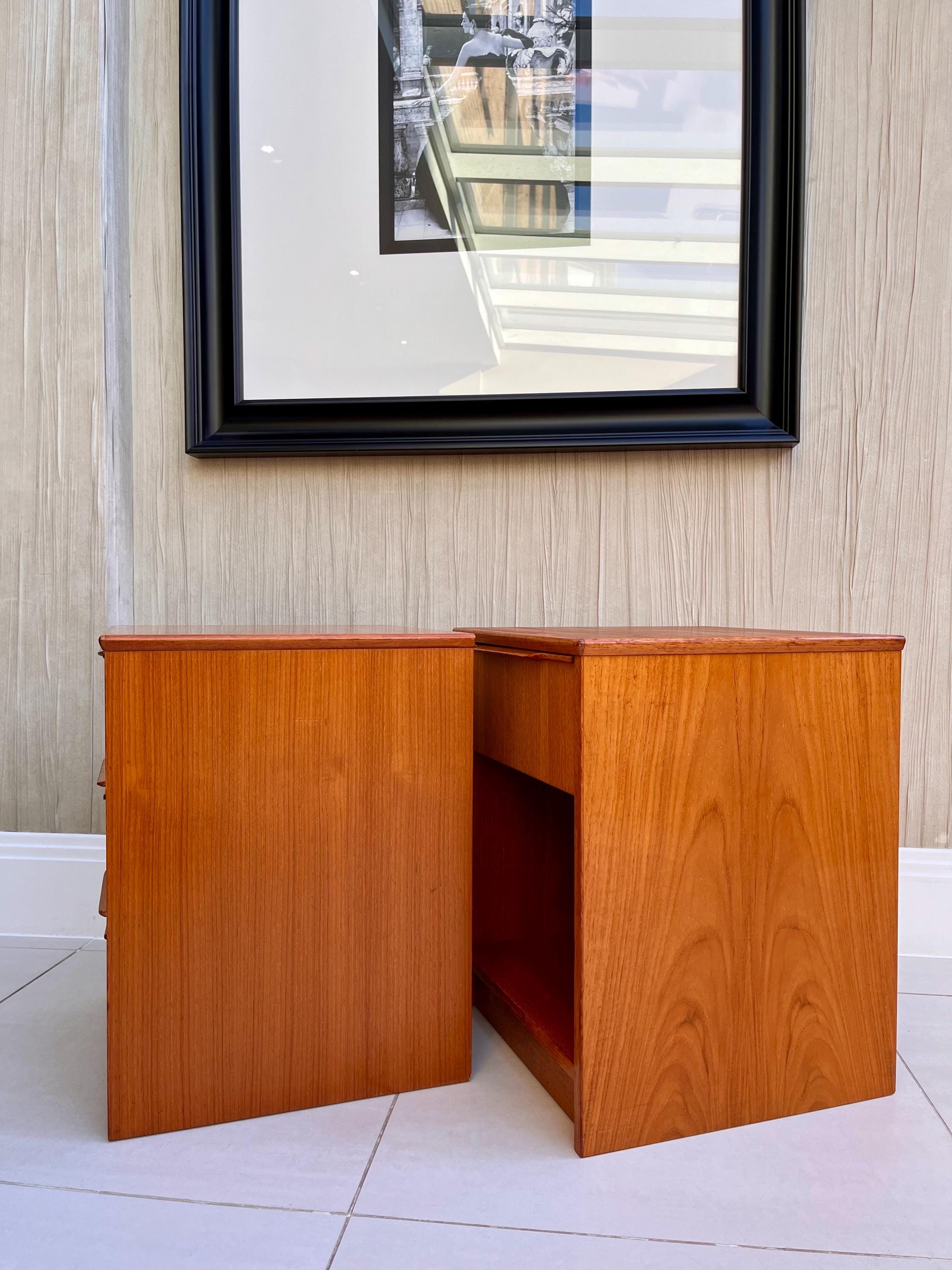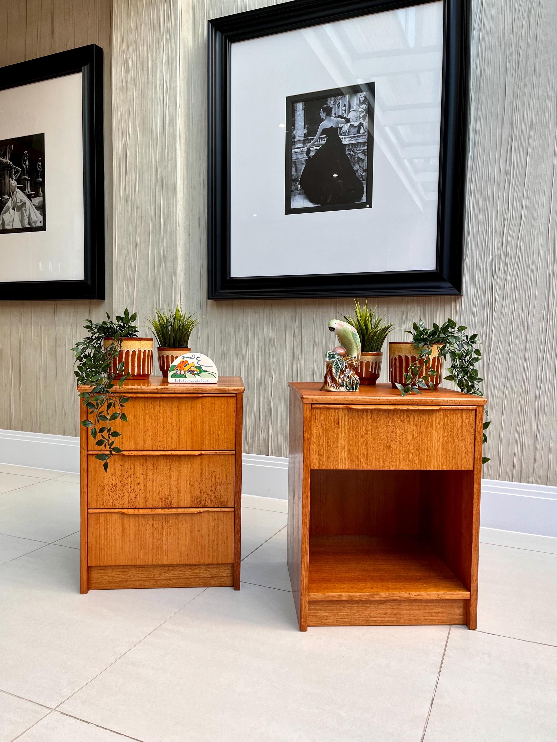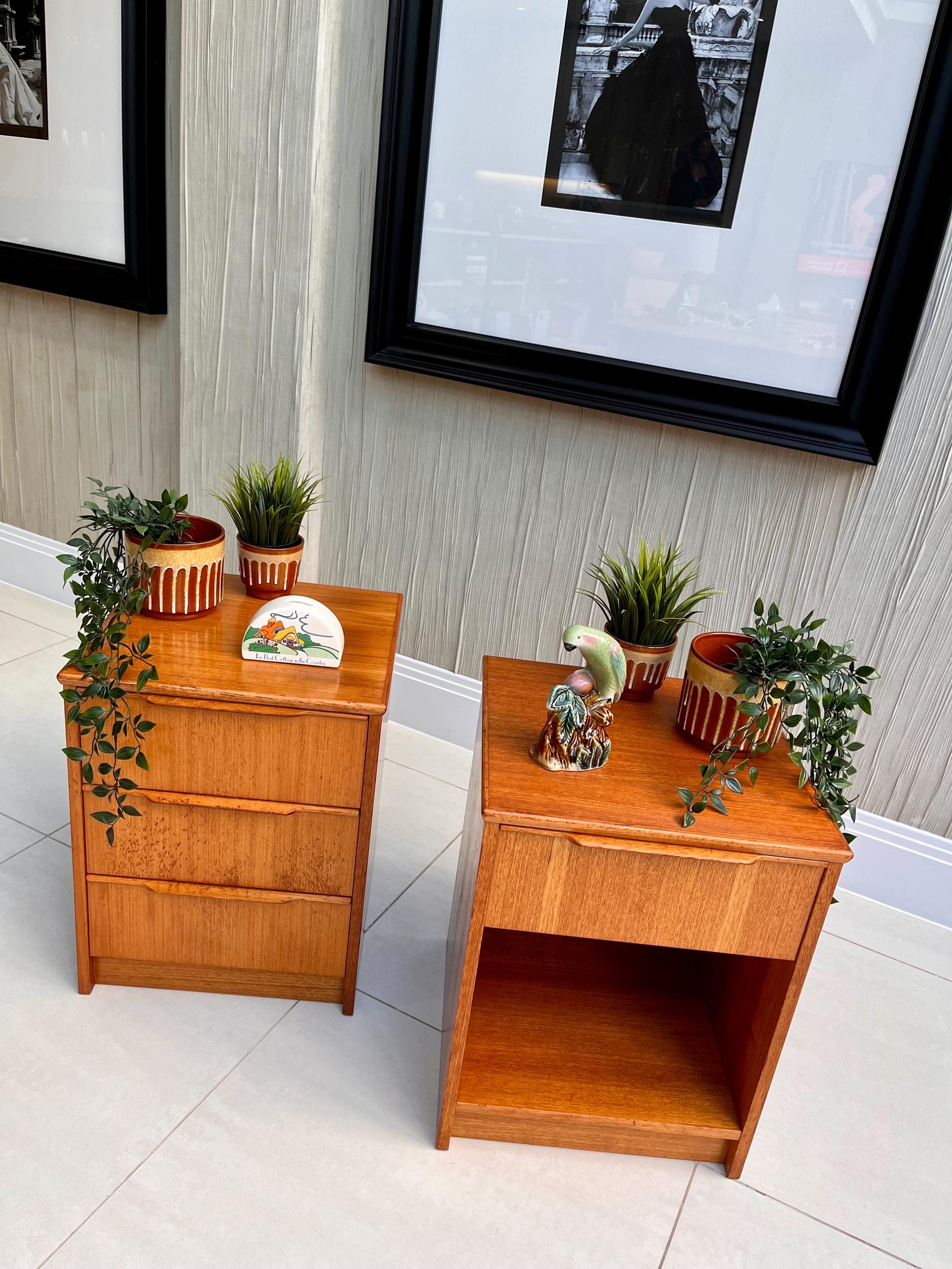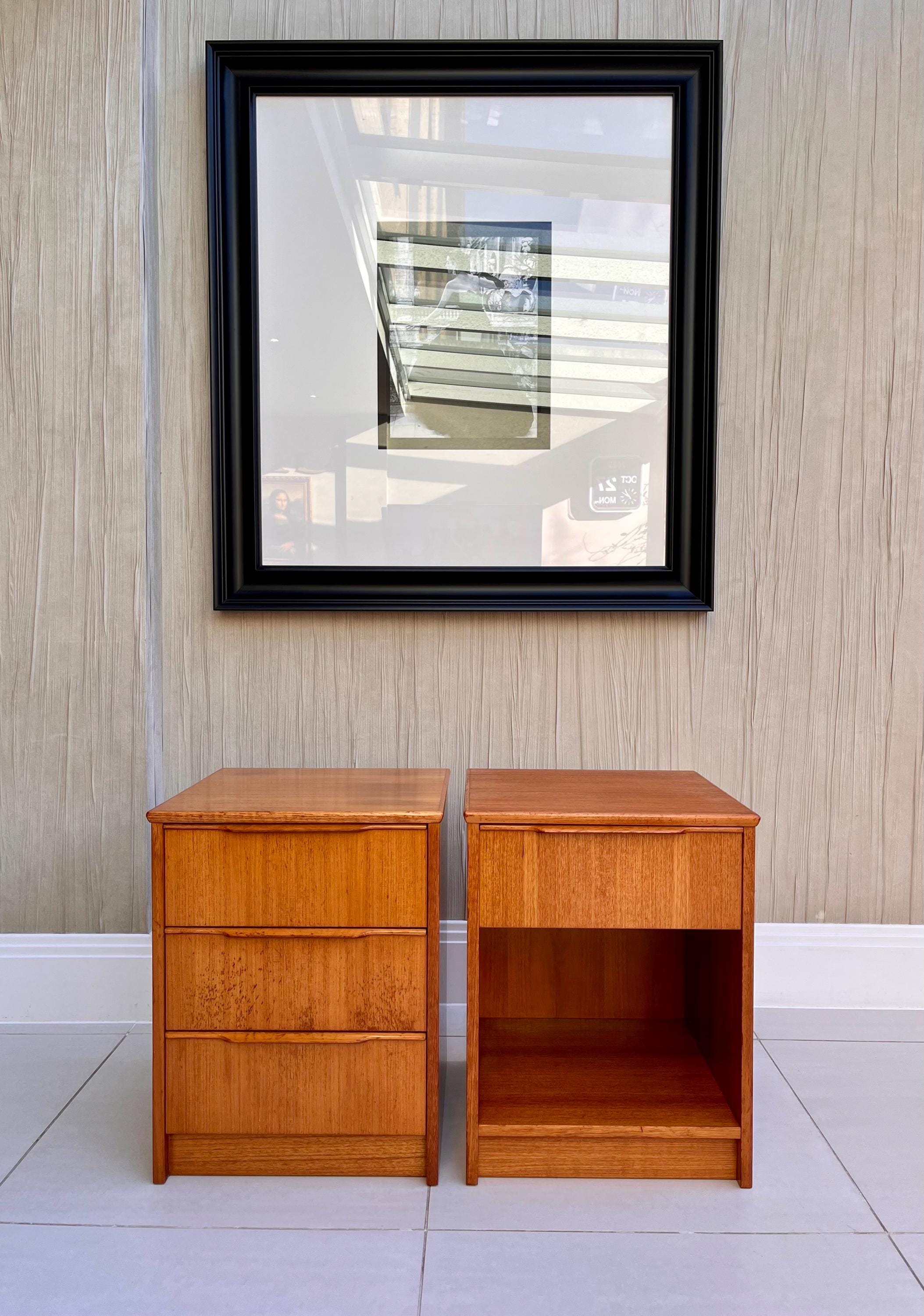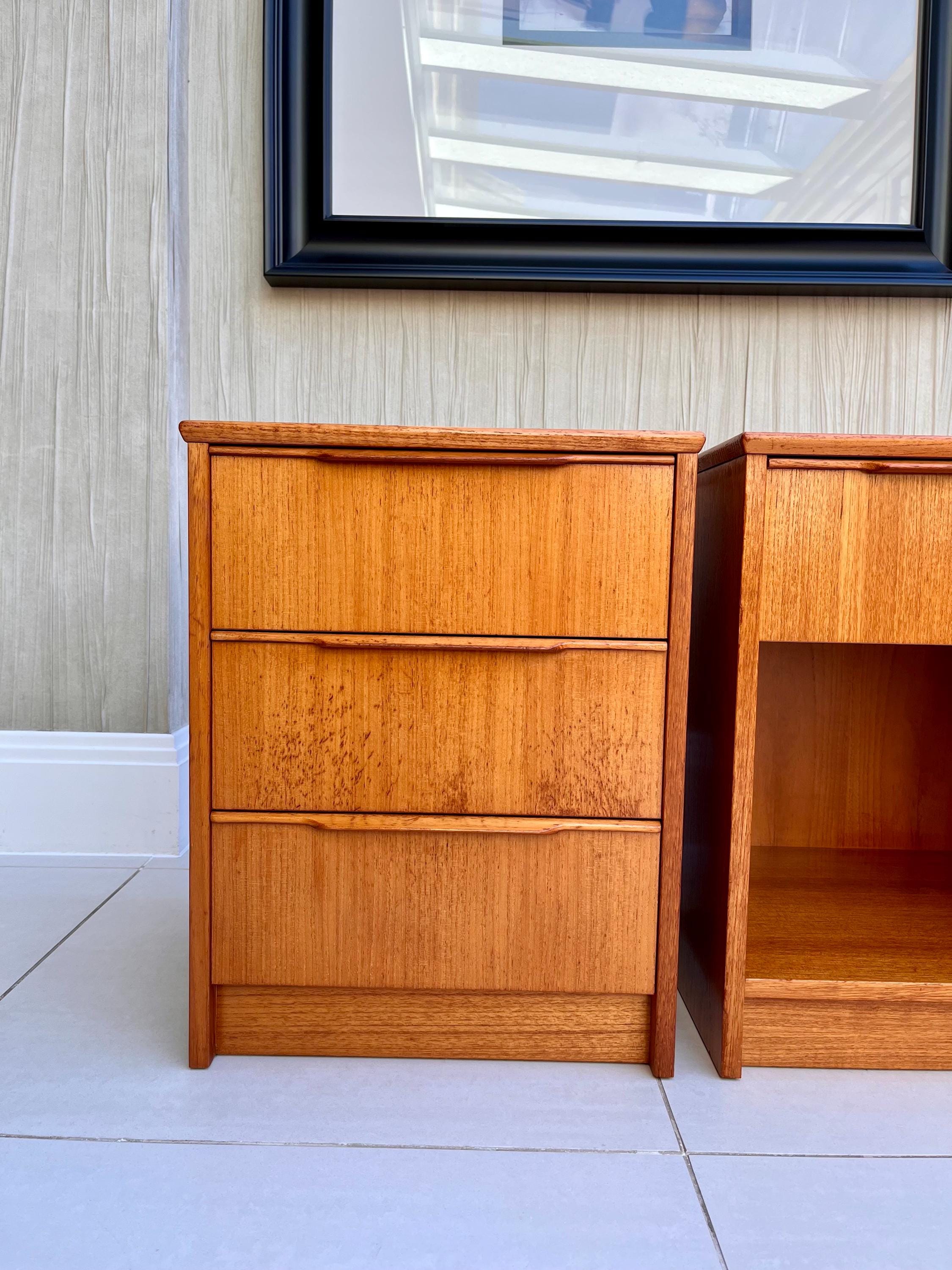Both pieces present beautifully after careful cleaning and restoration, showing only age-related marks consistent with use. The drawers run smoothly, interiors are clean and odour-free, and the teak has been carefully nourished with Danish oil to bring out its natural warmth and character.