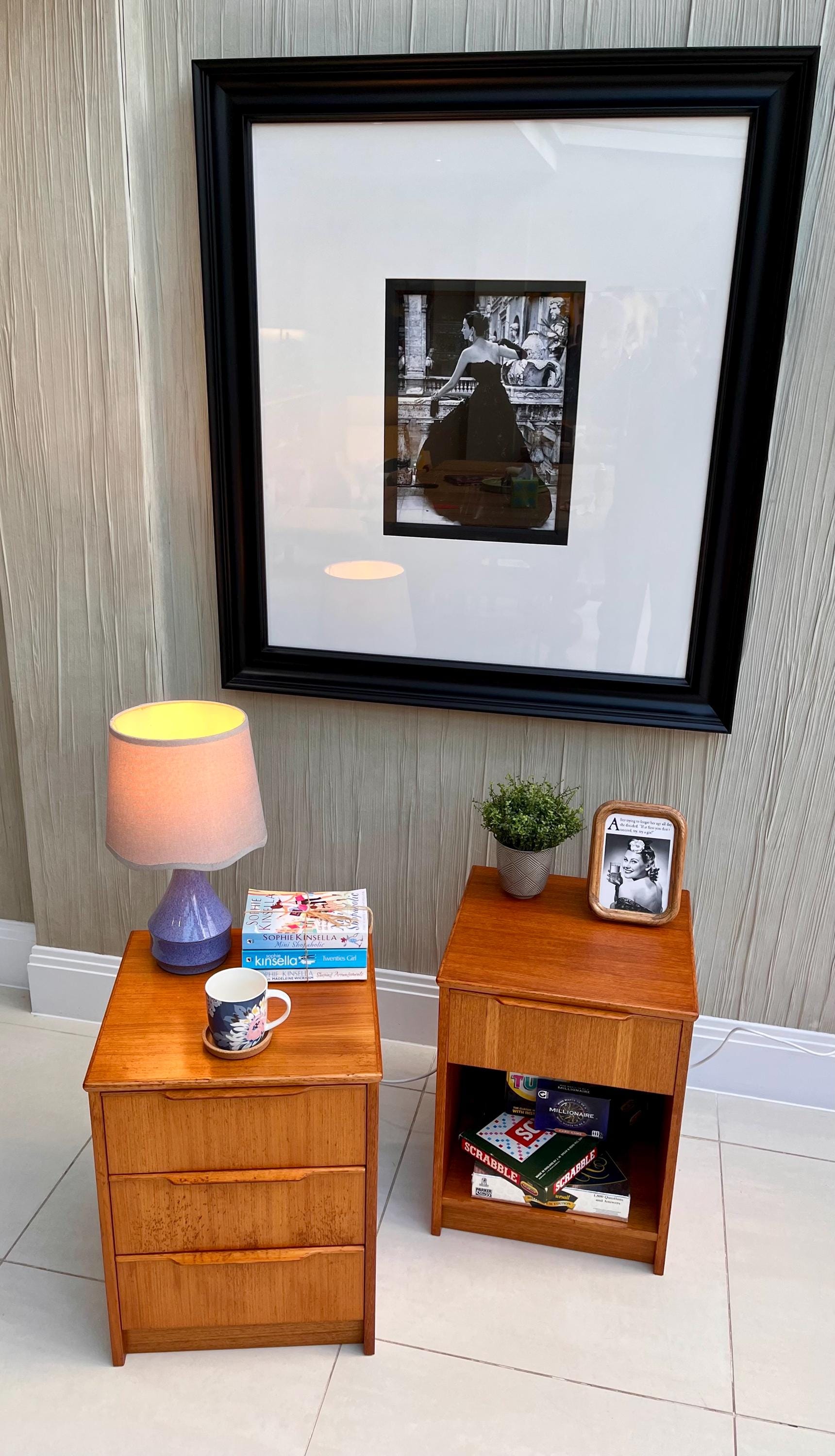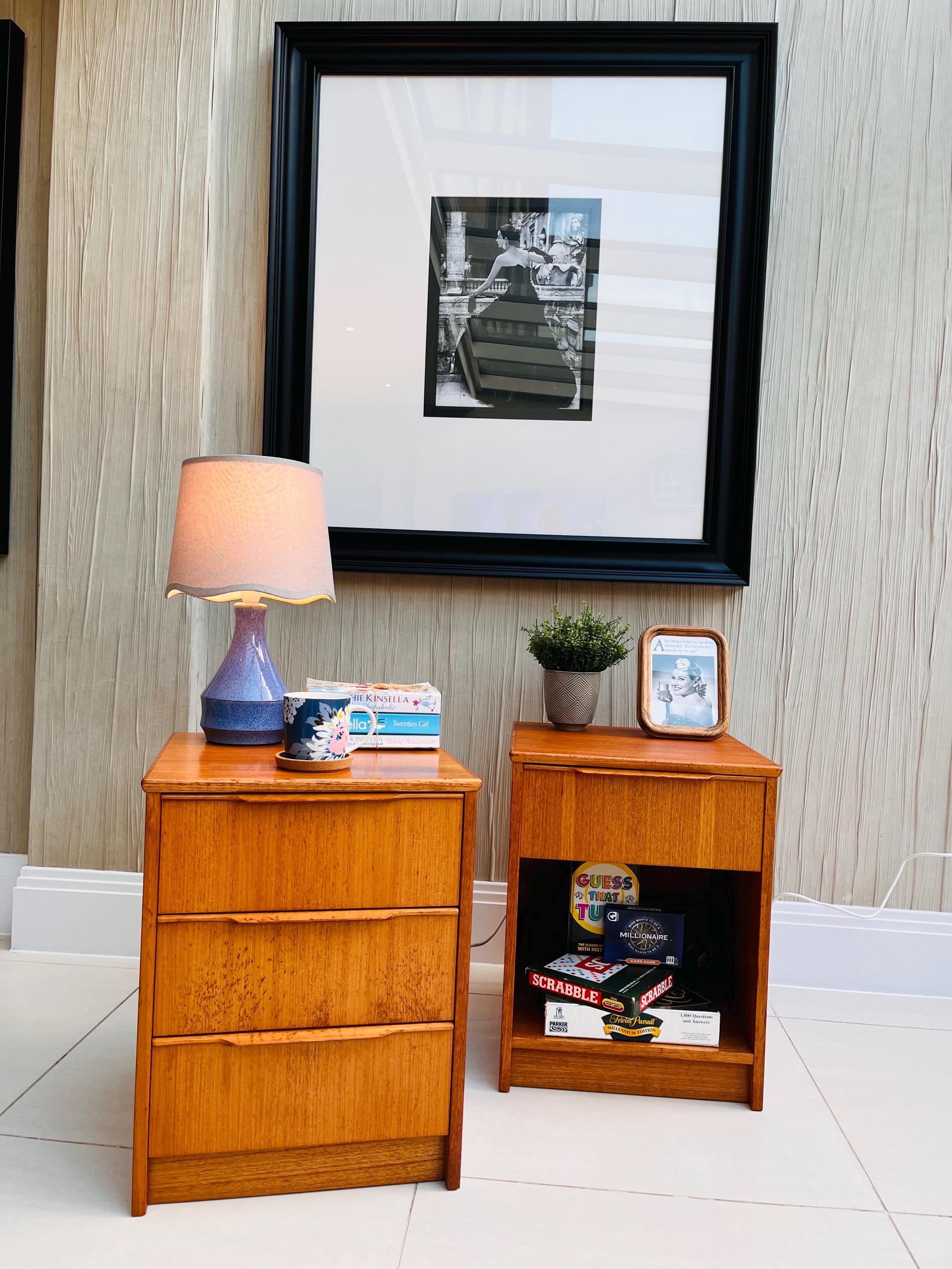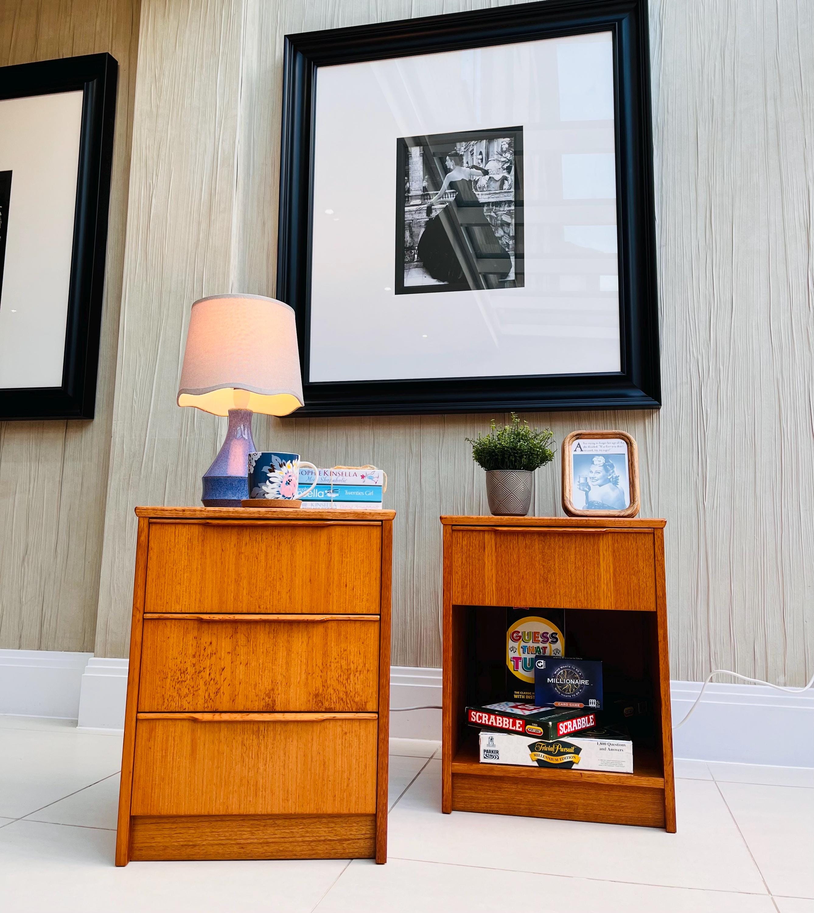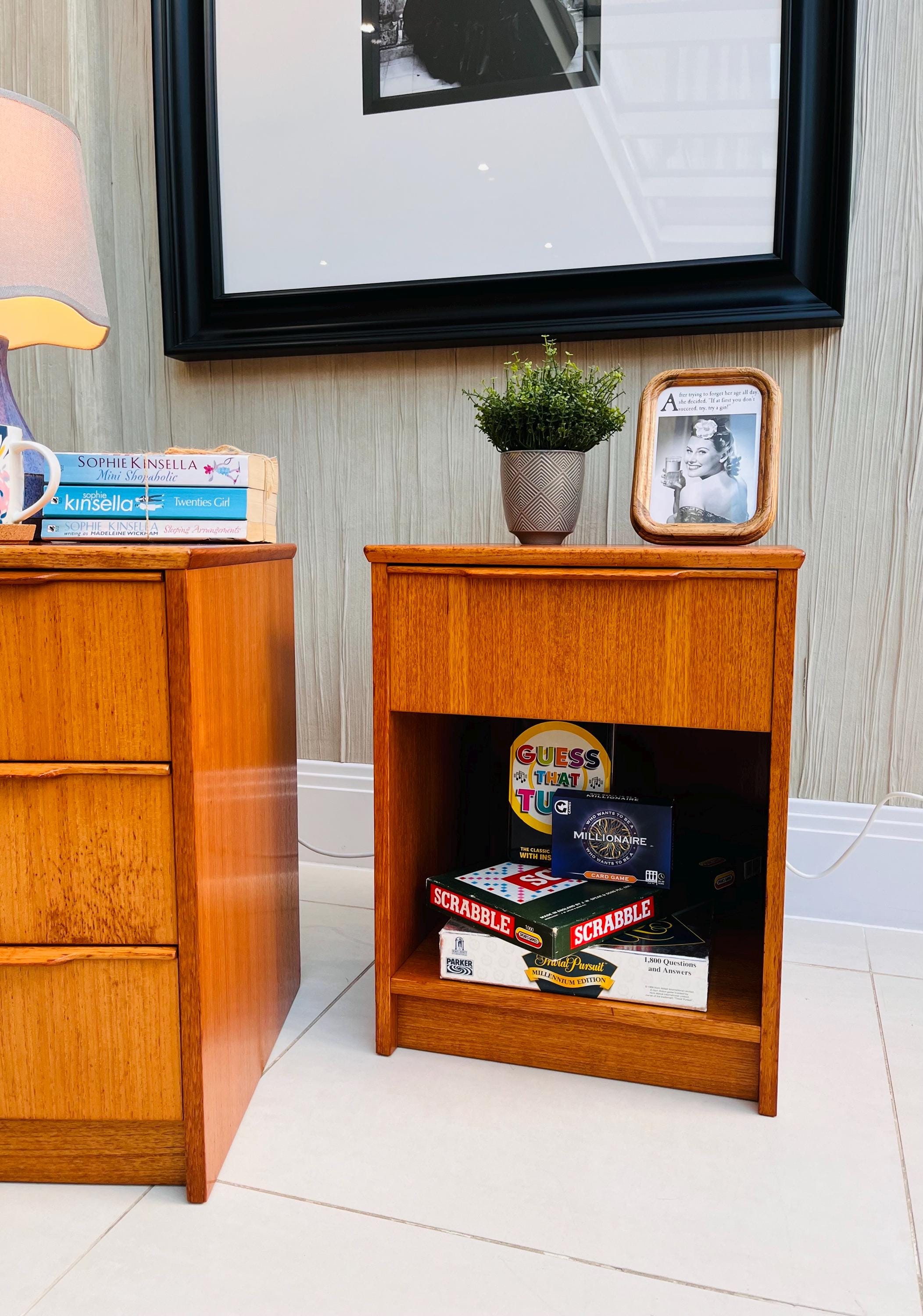 Both pieces present beautifully after careful cleaning and restoration, showing only age-related marks consistent with use. The drawers run smoothly, interiors are clean and odour-free, and the teak has been carefully nourished with Danish oil to bring out its natural warmth and character.