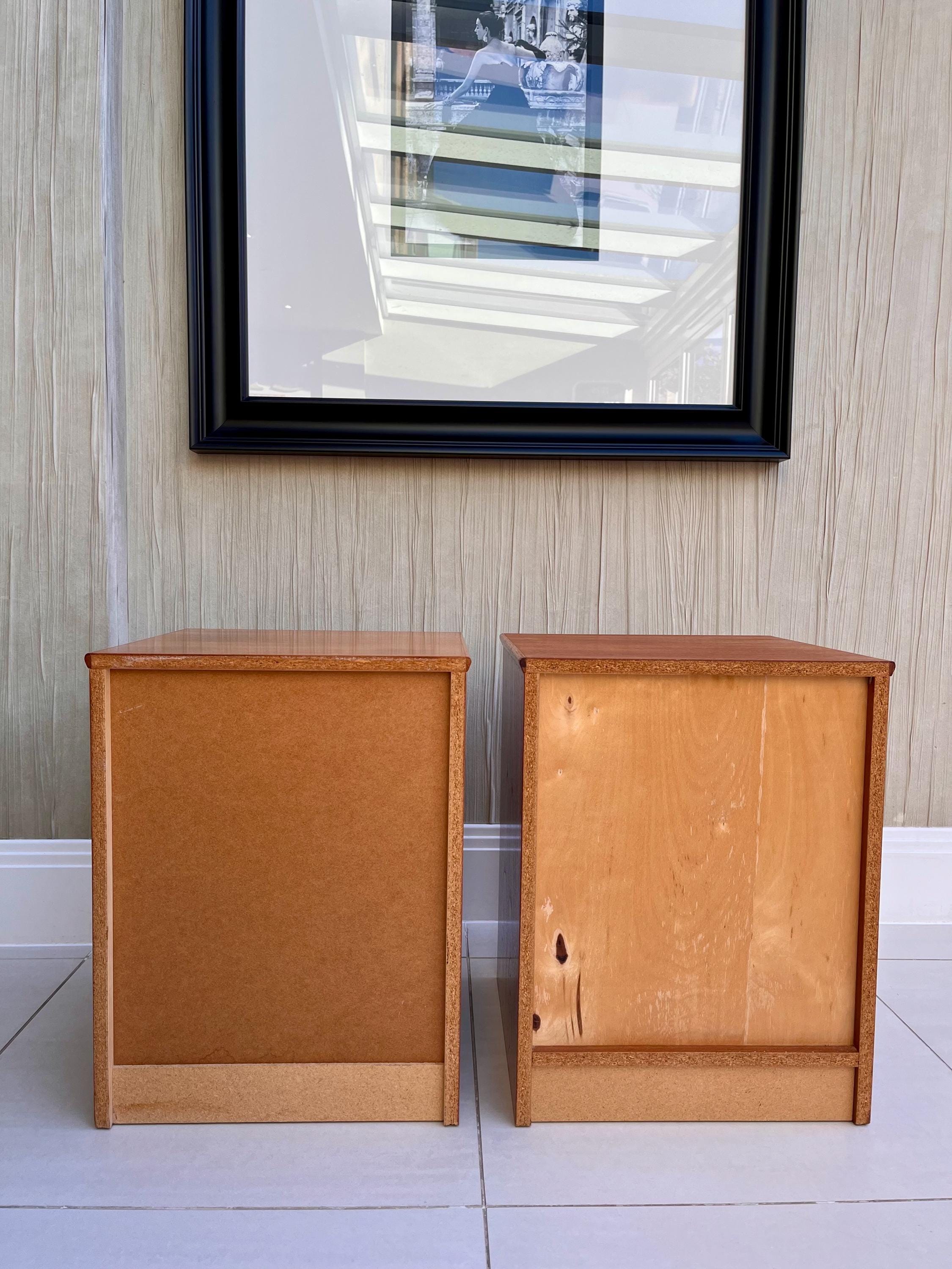 A beautifully crafted pair of mid-century teak bedside cabinets by Steens of Denmark, showcasing the clean lines, craftsmanship, and natural warmth that Scandinavian design is celebrated for.
