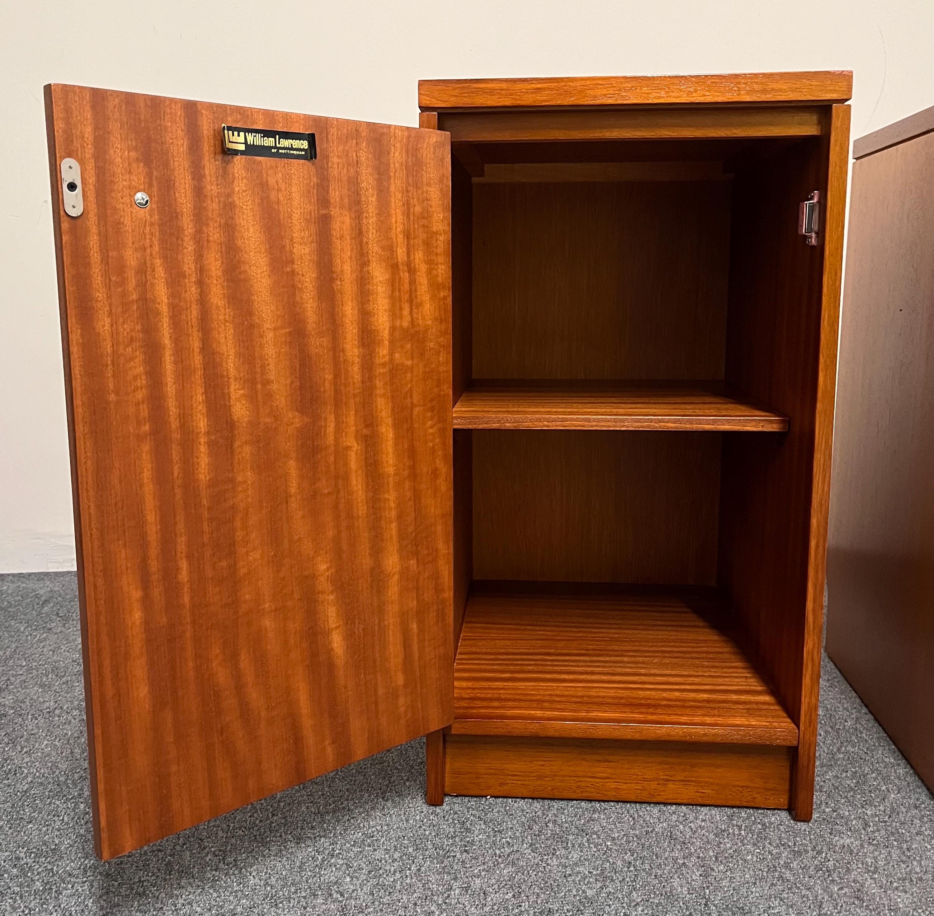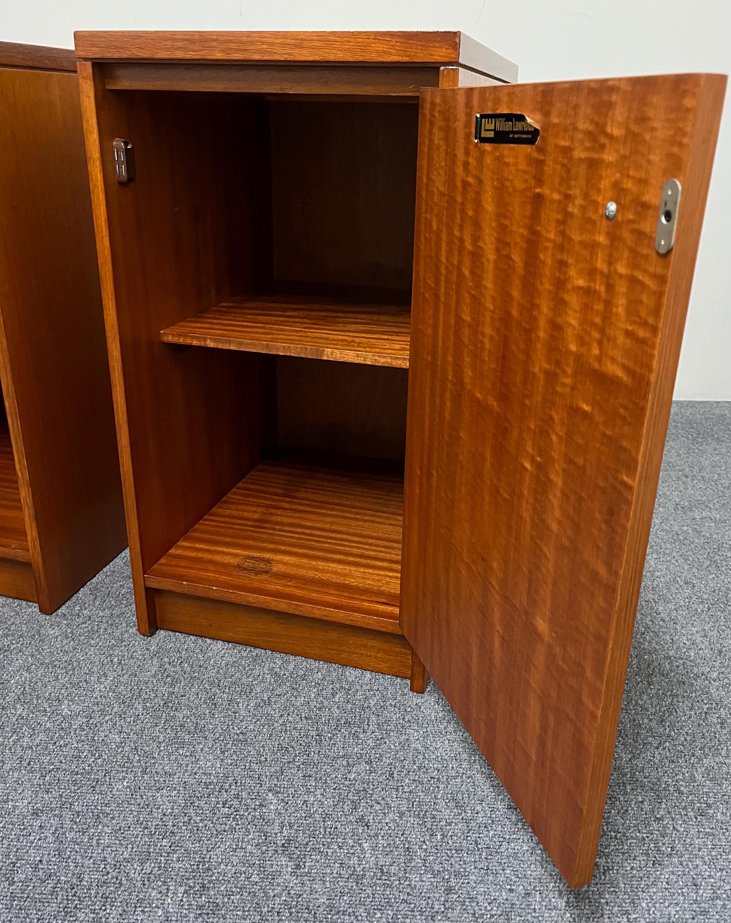 A beautifully made pair of mid-century bedside lockers by William Lawrence of Nottingham, one of Britain’s most respected makers of the period, admired for solid craftsmanship, refined lines and exceptionally durable construction.