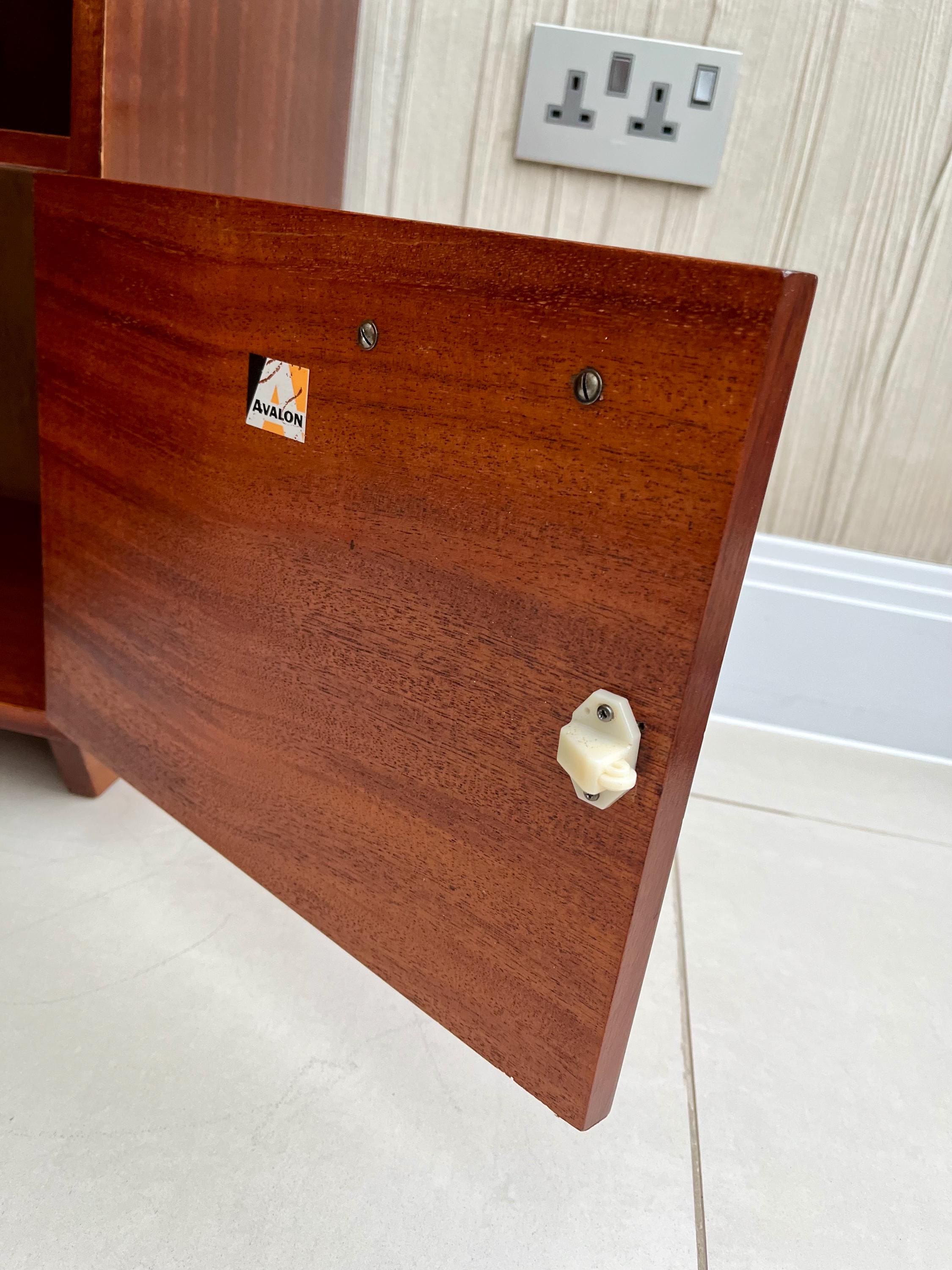 A handsome matched pair of British mid-century Avalon bedside cabinets, dating from the early to mid-1970s, a period when Avalon were producing well-designed, affordable modern furniture for contemporary British homes. Avalon pieces have become increasingly popular with collectors and interiors buyers alike, appreciated for their clean lines, practical proportions and ability to sit comfortably alongside makers such as Stag, Meredew and Austinsuite. Both cabinets retain their original Avalon labels, confirming authenticity and making this a fully identifiable, collectible pair.