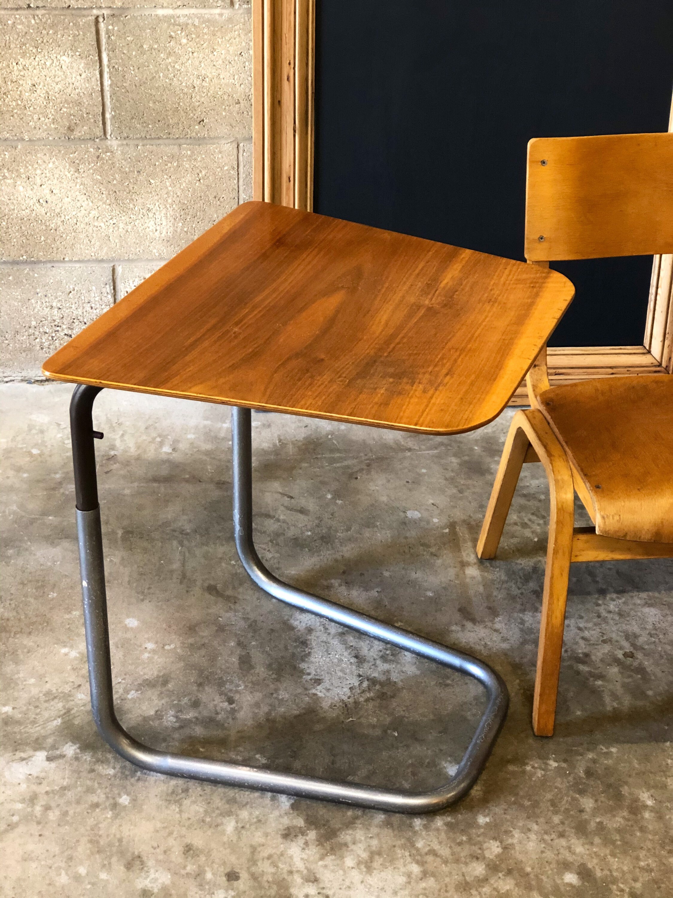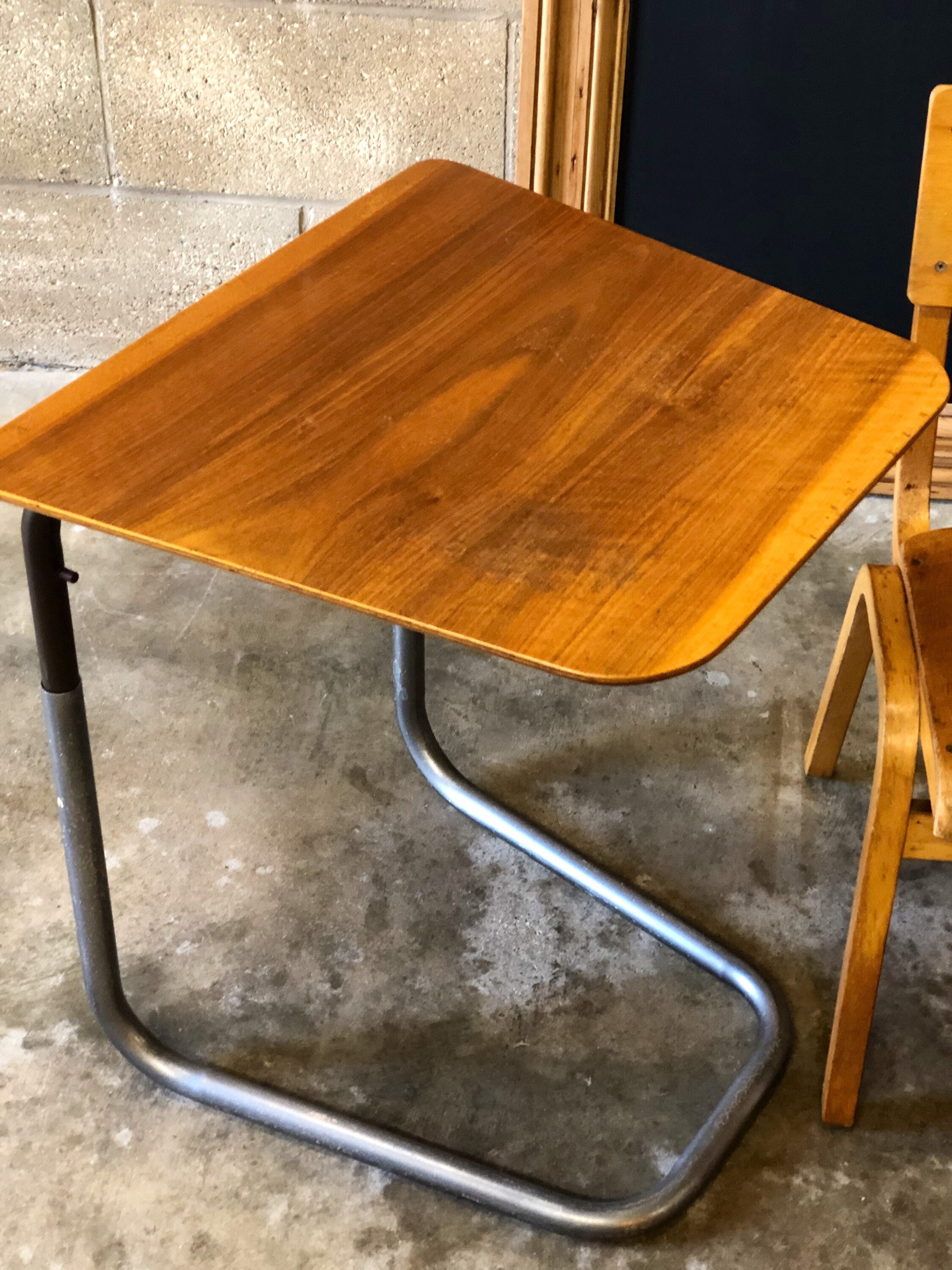 A great versatile vintage adjustable laptop desk/table/tray for kids or adults. The cantilever design of this table is great, it slides under the sofa or bed meaning you can tuck right up to the table while working or eating!