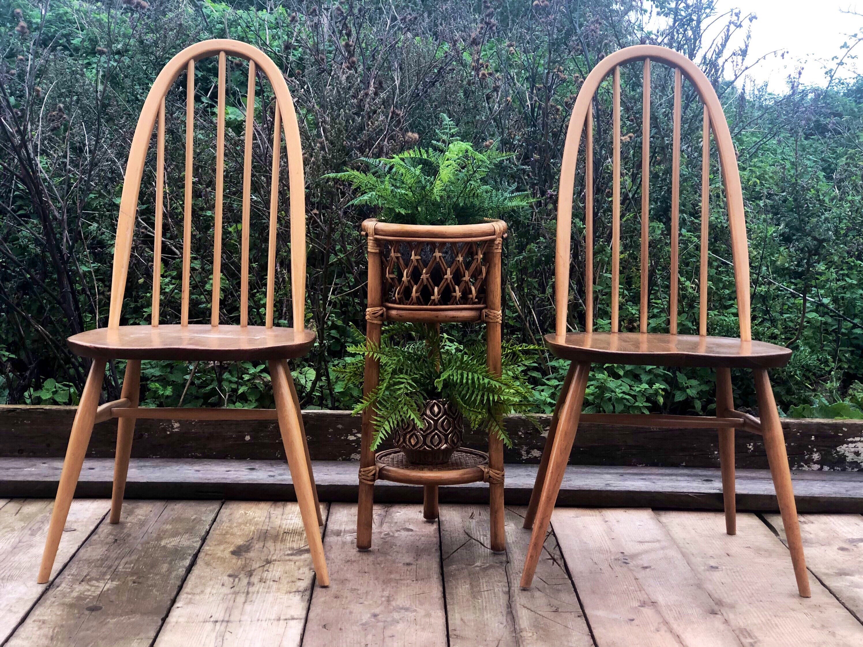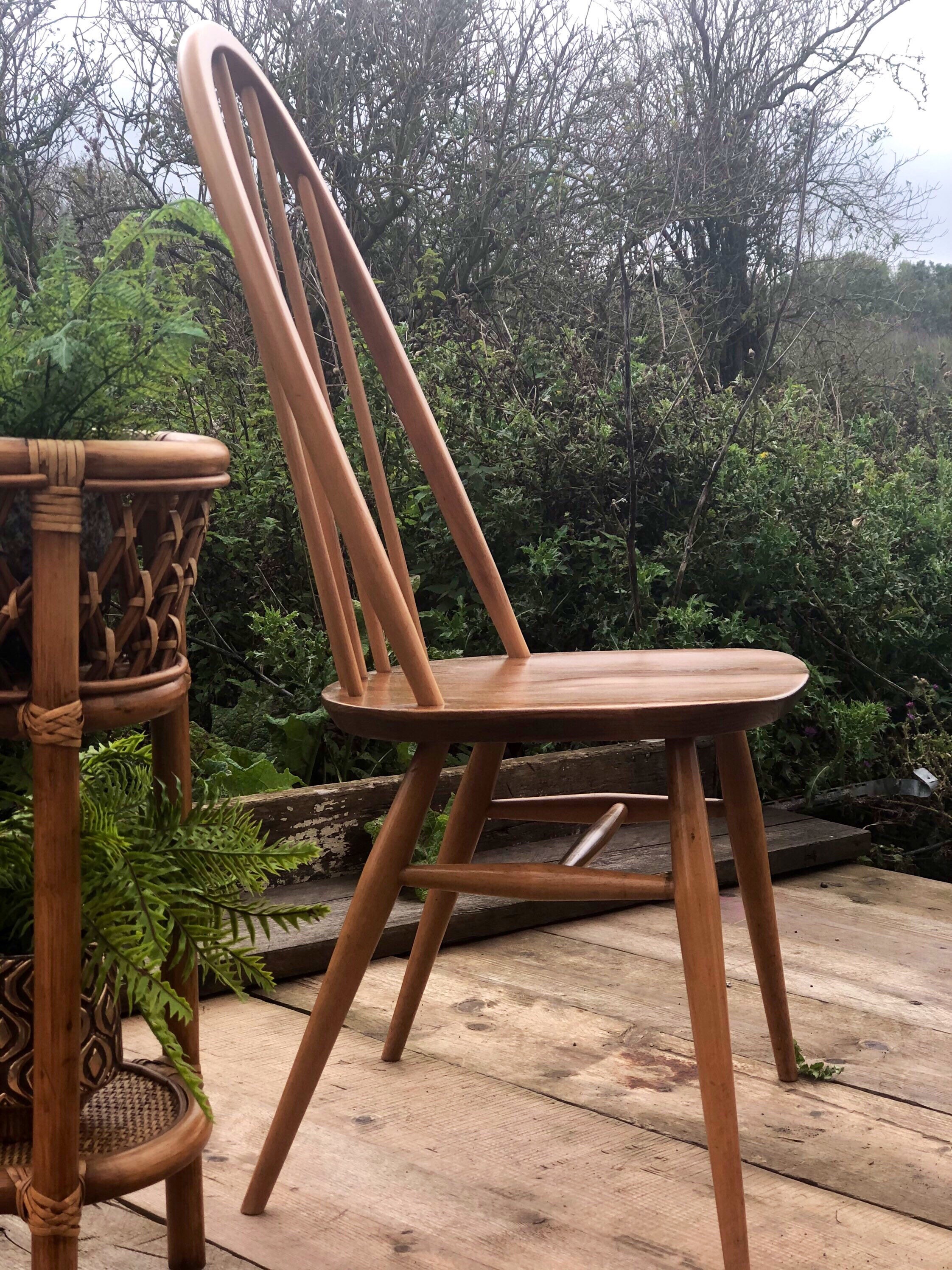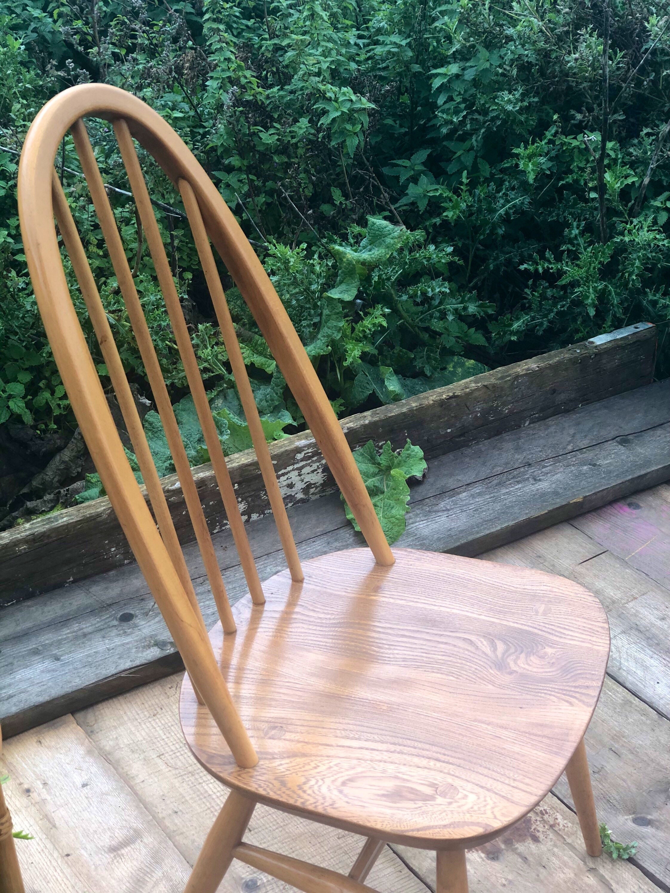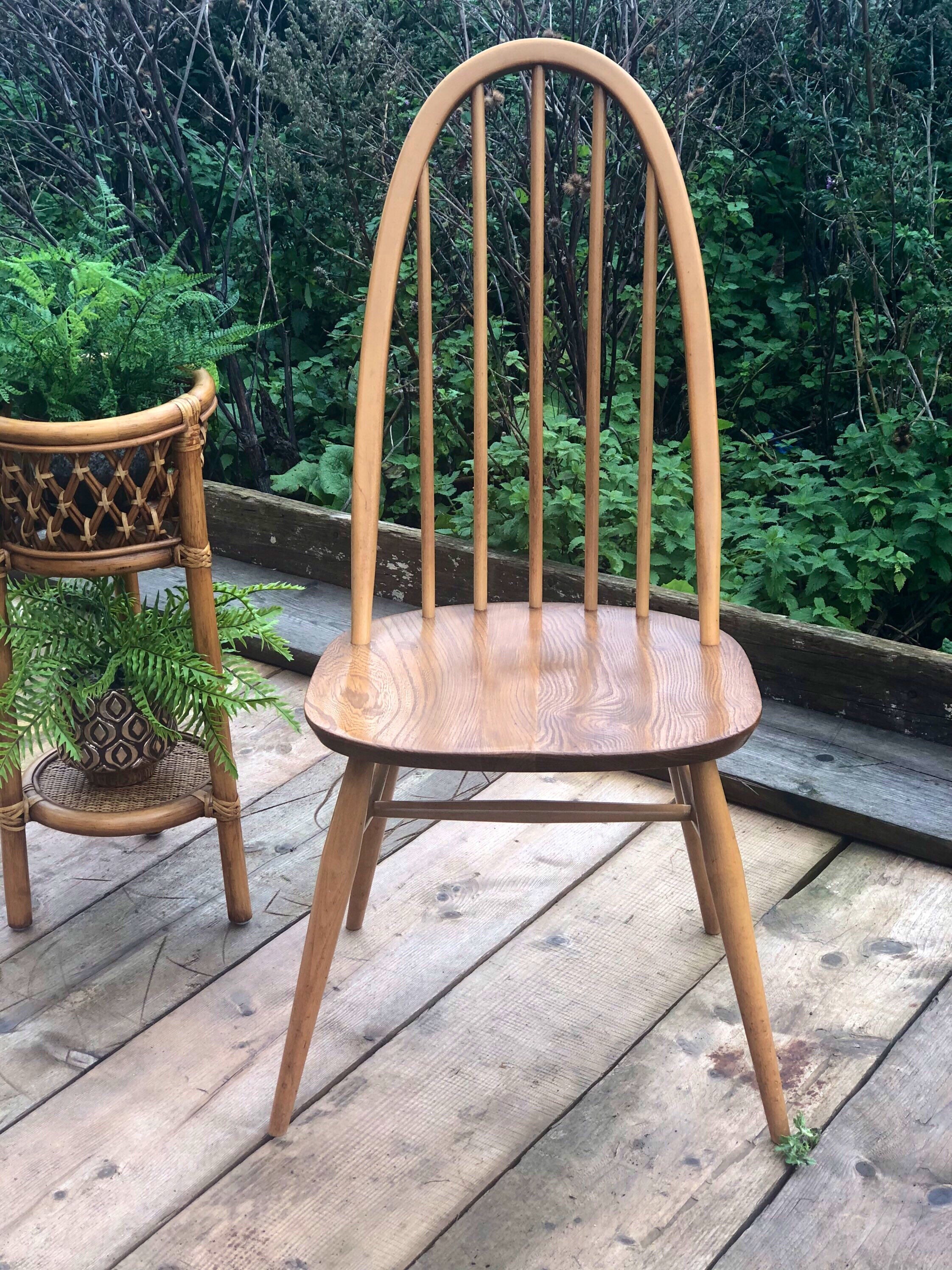 These chairs are one of Ercol’s classic mid century designs, matching ergonomic comfort with inimitable, minimal, style and beautiful solid wood. The distinctive spindles and hoop backs with the tapered splayed legs give these chairs a following which has only grown over the half century since they were created.